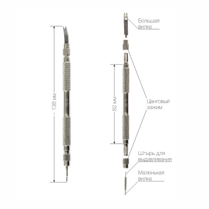 Шпилькосъёмник - инструмент для замены (снятия и установки) ремешка или браслета, застёжки, пряжки для часов.