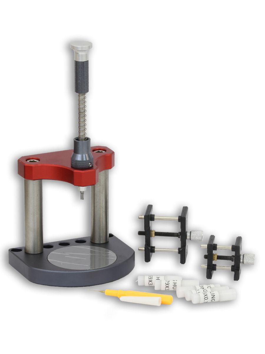 Потанс для рассверливания, приклеивания ножек к циферблату. В комплекте: Потанс, держатель, ножки для крепления к циферблату (в колбочках), насадка для сверления