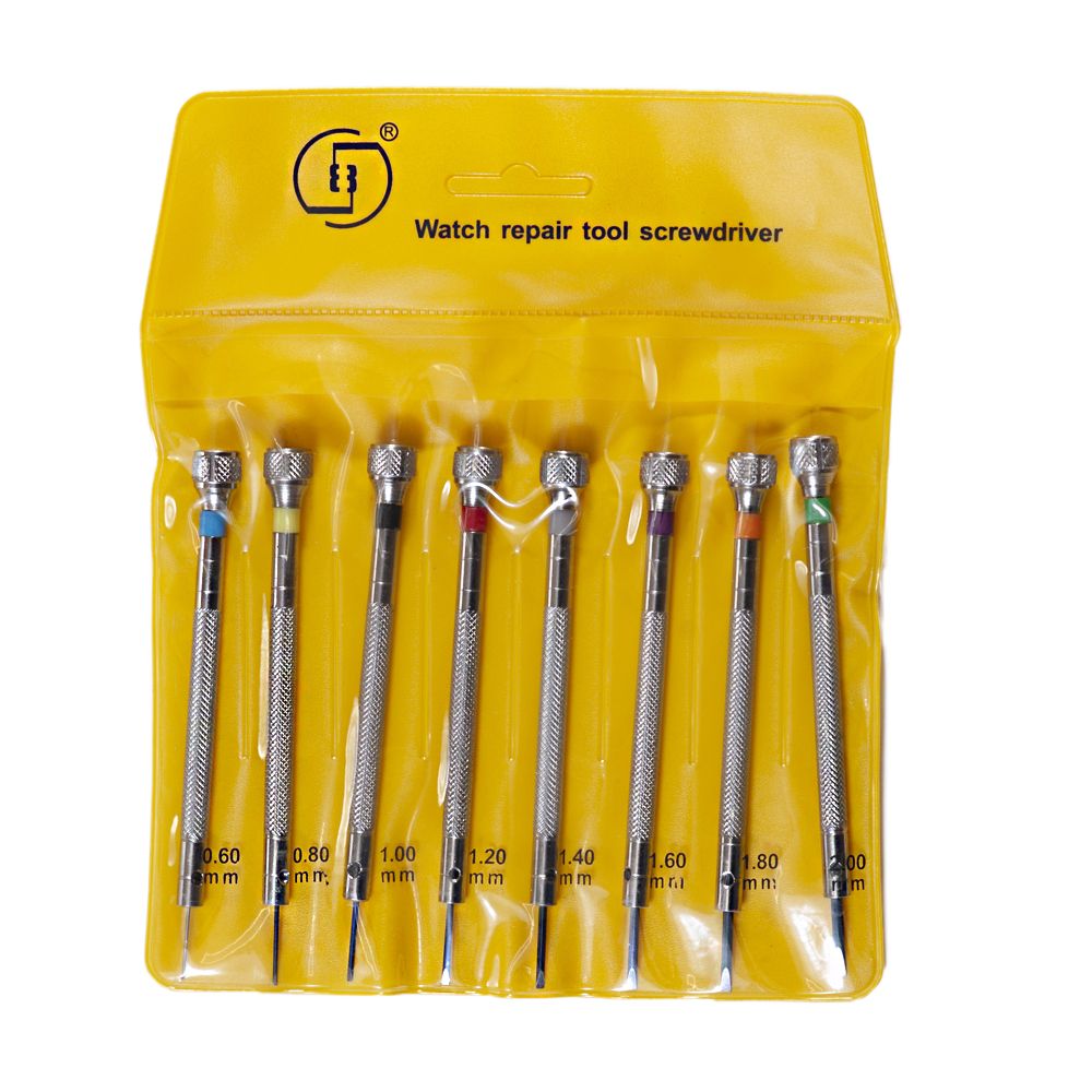Диаметр винтовых отверток: -0,6 мм, -0,8 мм, -1,0 мм, -1,2 мм, -1.4 мм, -1,6 мм, -1,8 мм, -2,0 мм.
