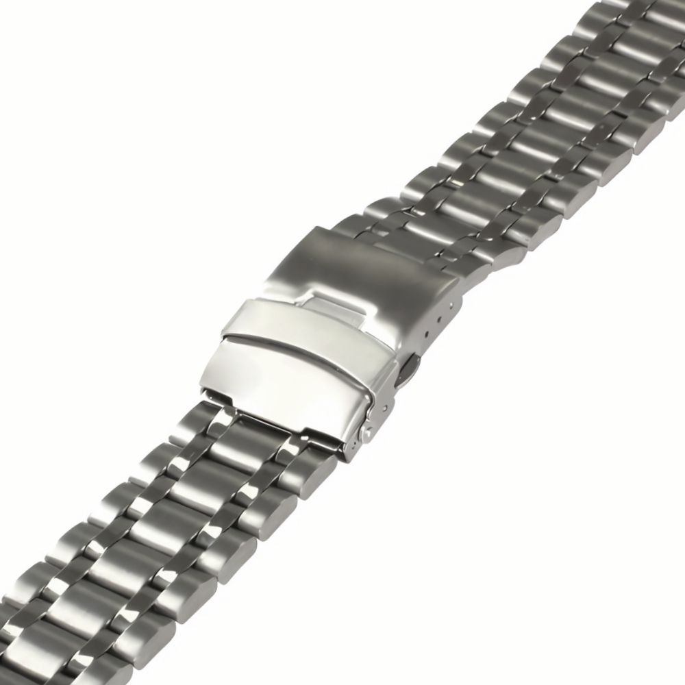 Звенья браслета изготовлены из согнутых стальных листов по технологии штамповки.