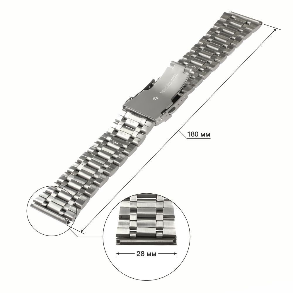 Регулировку длины можно осуществить путем удаления звеньев – по три звена с каждой из сторон, на браслете эти звенья помечены стрелочками. Дополнительно можно отрегулировать длину переставив полотно браслета по трем пазам, имеющимся в застежке (шаг около 2 мм).