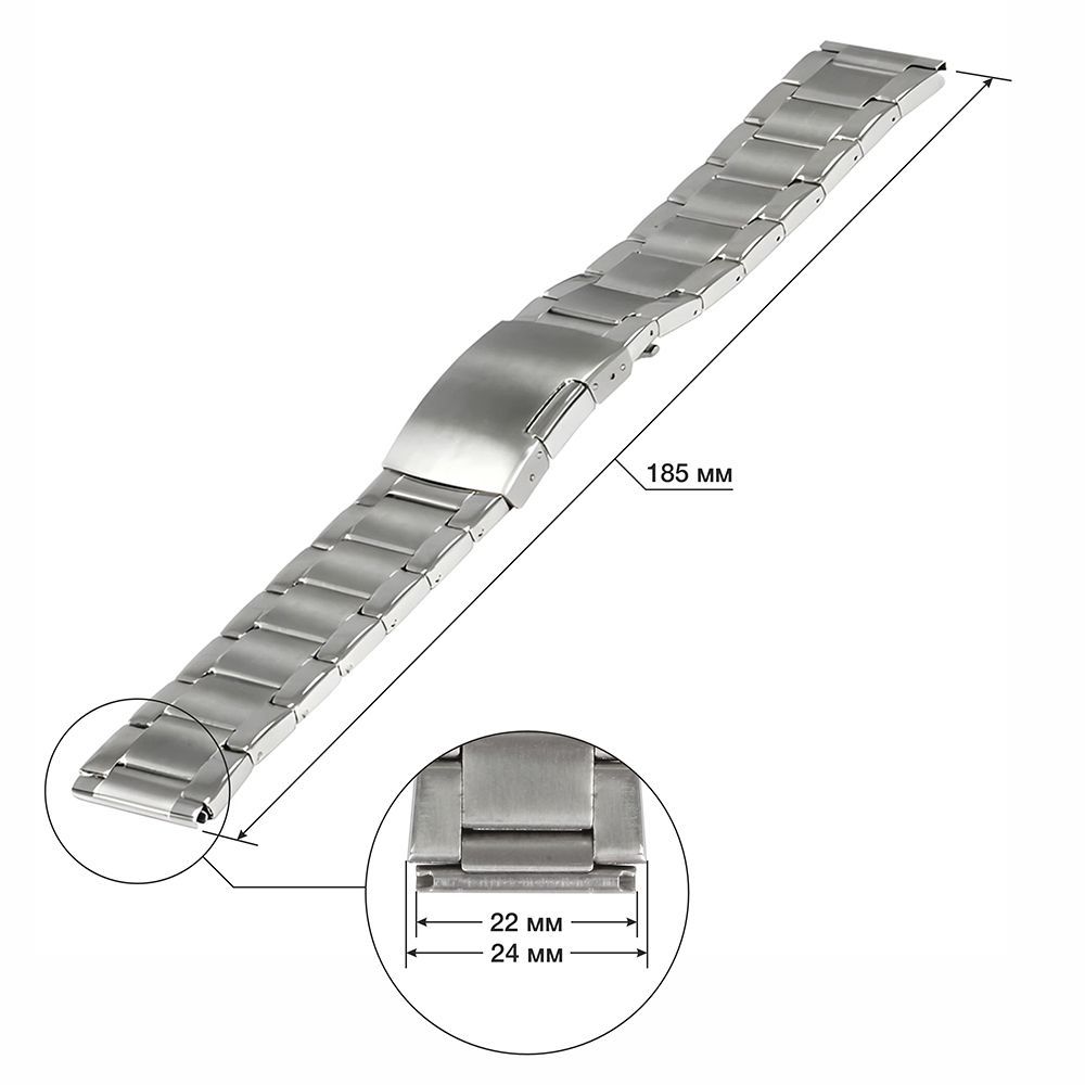 Классический мужской браслет с прямым креплением к корпусу часов. Размер браслета для часов 22 мм.