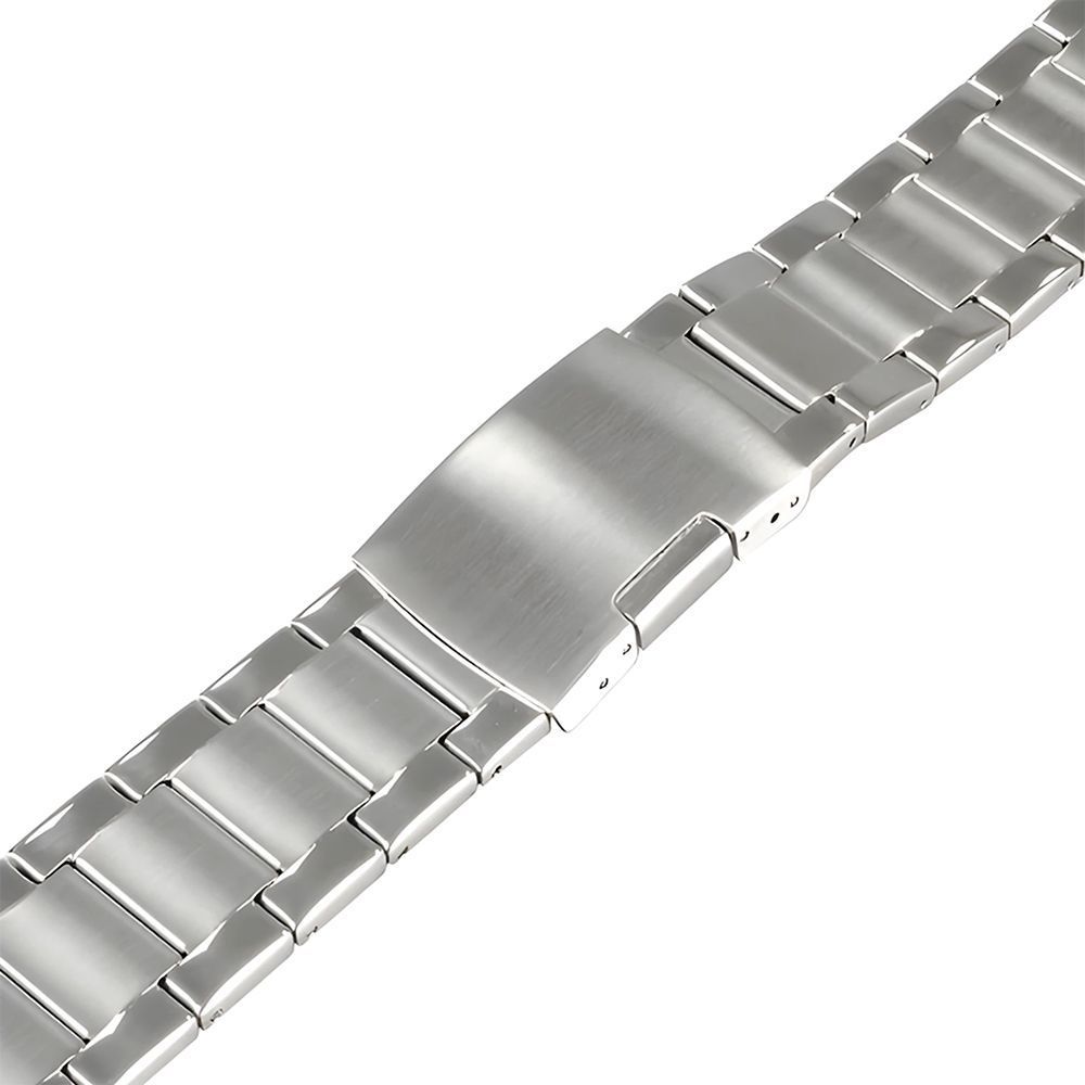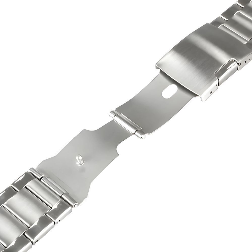 Звенья браслета изготовлены из стальных листов, по улучшенной технологии – таким образом, что по краям браслета этого не видно и выглядят звенья цельнометаллическими как у более дорогих и массивных литых браслетов.