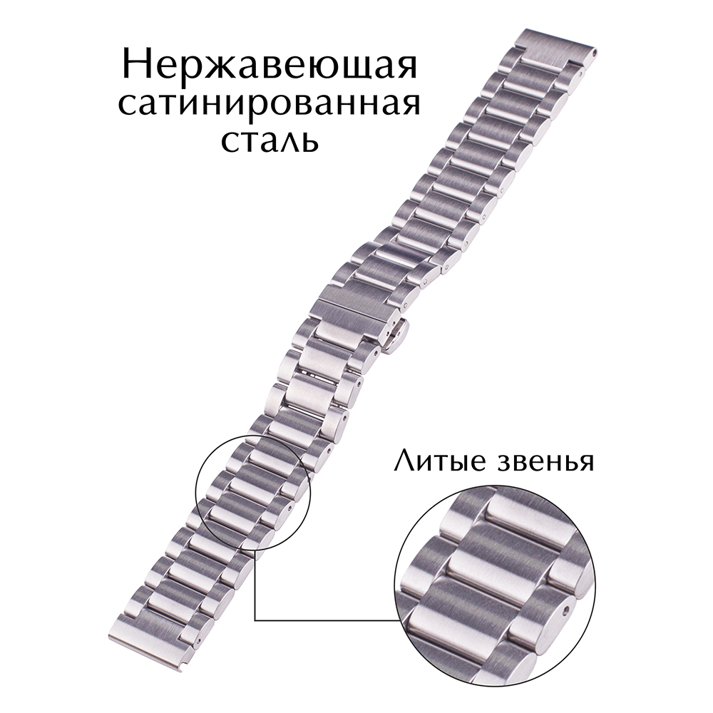 Металлический браслет для часов в стилистике oyster, изготовлен из нержавеющей стали. Звенья браслета литые - изготовлены из цельного металла.