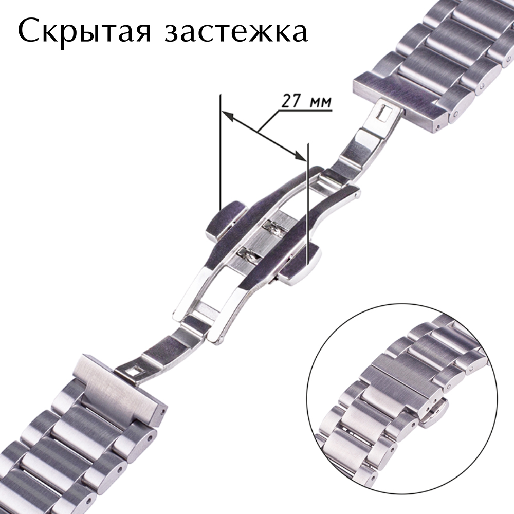 Скрытая застежка придает стильный вид браслету, а кнопки позволяют легко и быстро снять часы с руки.
