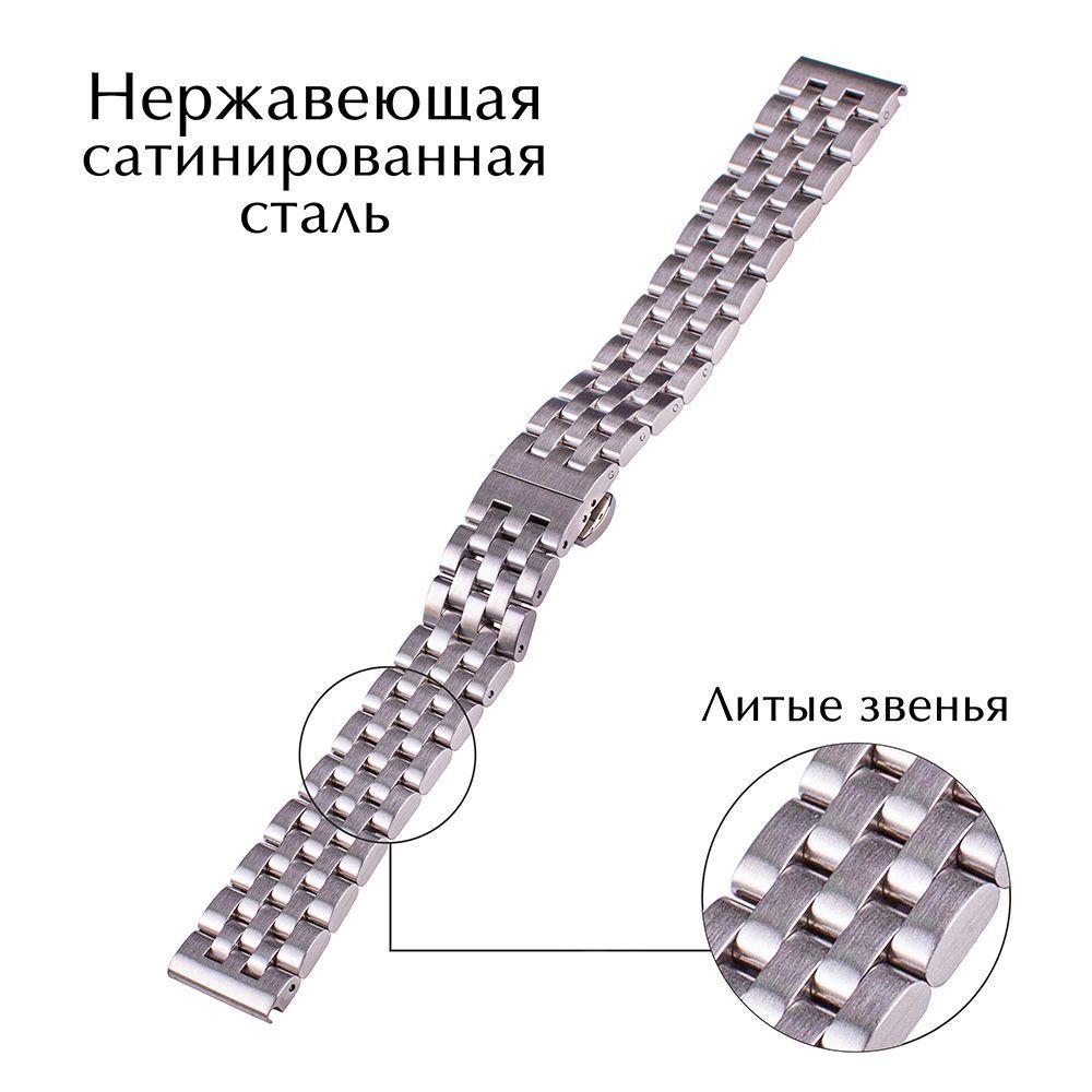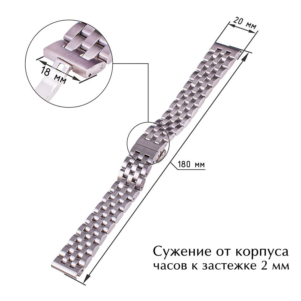 Металлический браслет для часов изготовлен из нержавеющей стали. Звенья браслета литые - изготовлены из цельного металла.