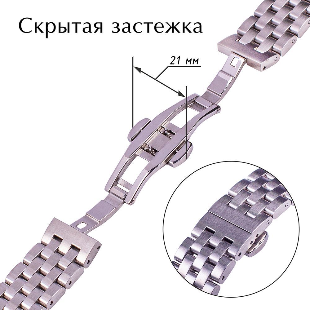 Скрытая застежка придает стильный вид браслету, а кнопки позволяют легко и быстро снять часы с руки.