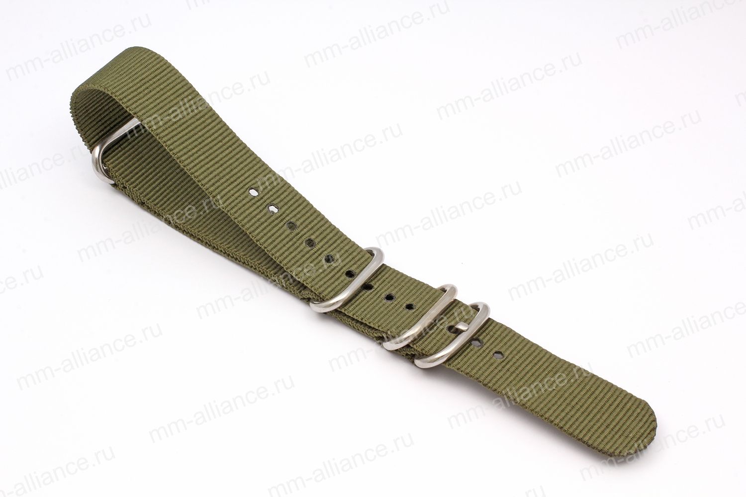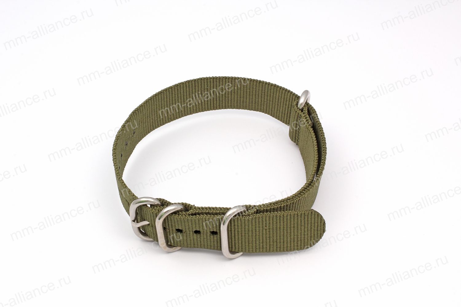 Ремешок нейлоновый для часов 22 р-р, темно-зеленый (хаки)