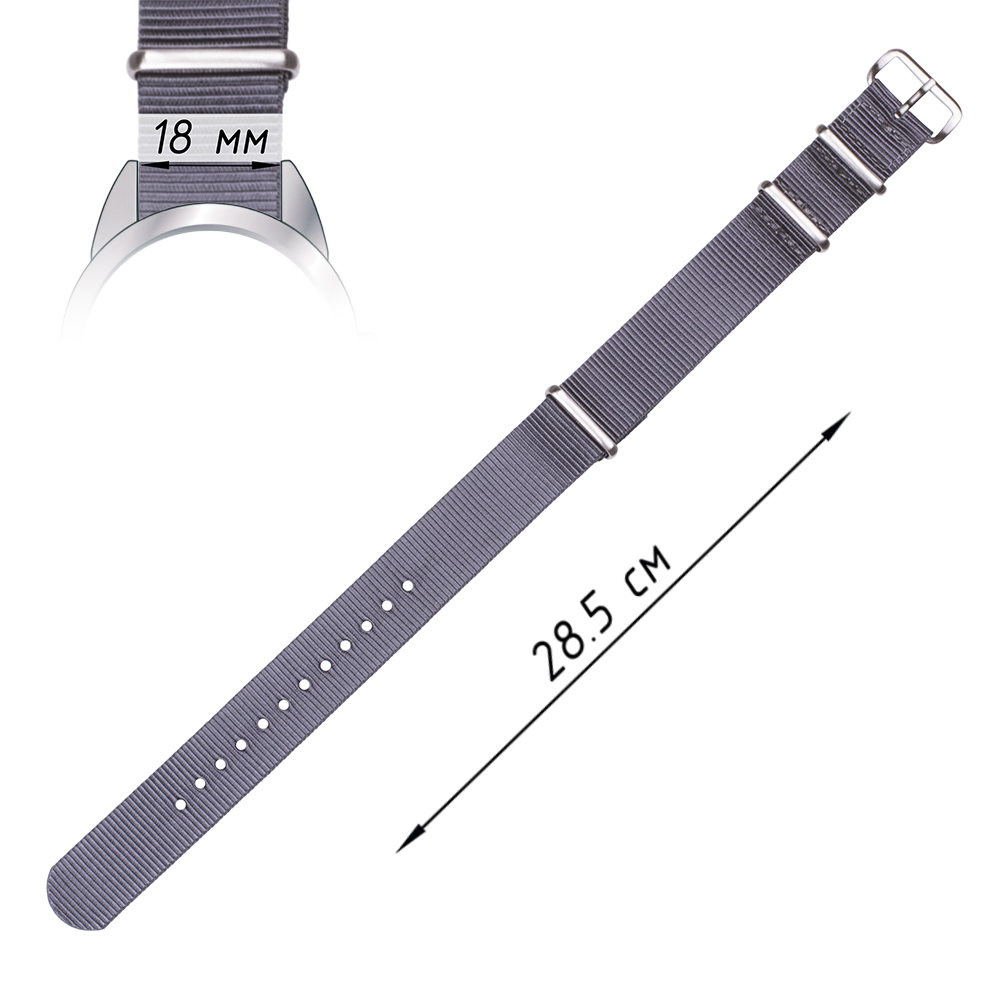 Ремешок нейлоновый для часов (NATO) S-36, 18 мм серый