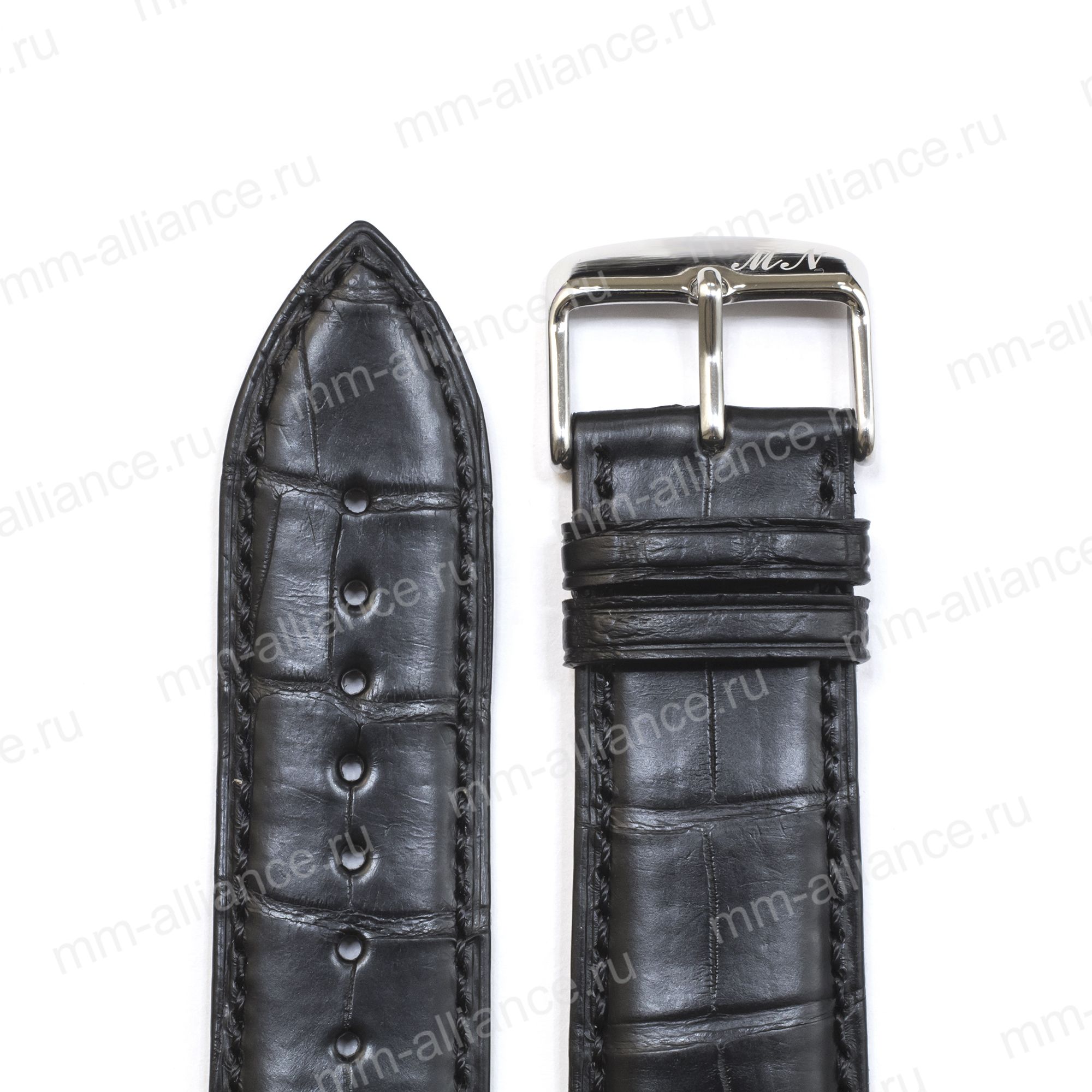 Ремень для часов "Mario Notti", 18 мм, Черный, Аллигатор