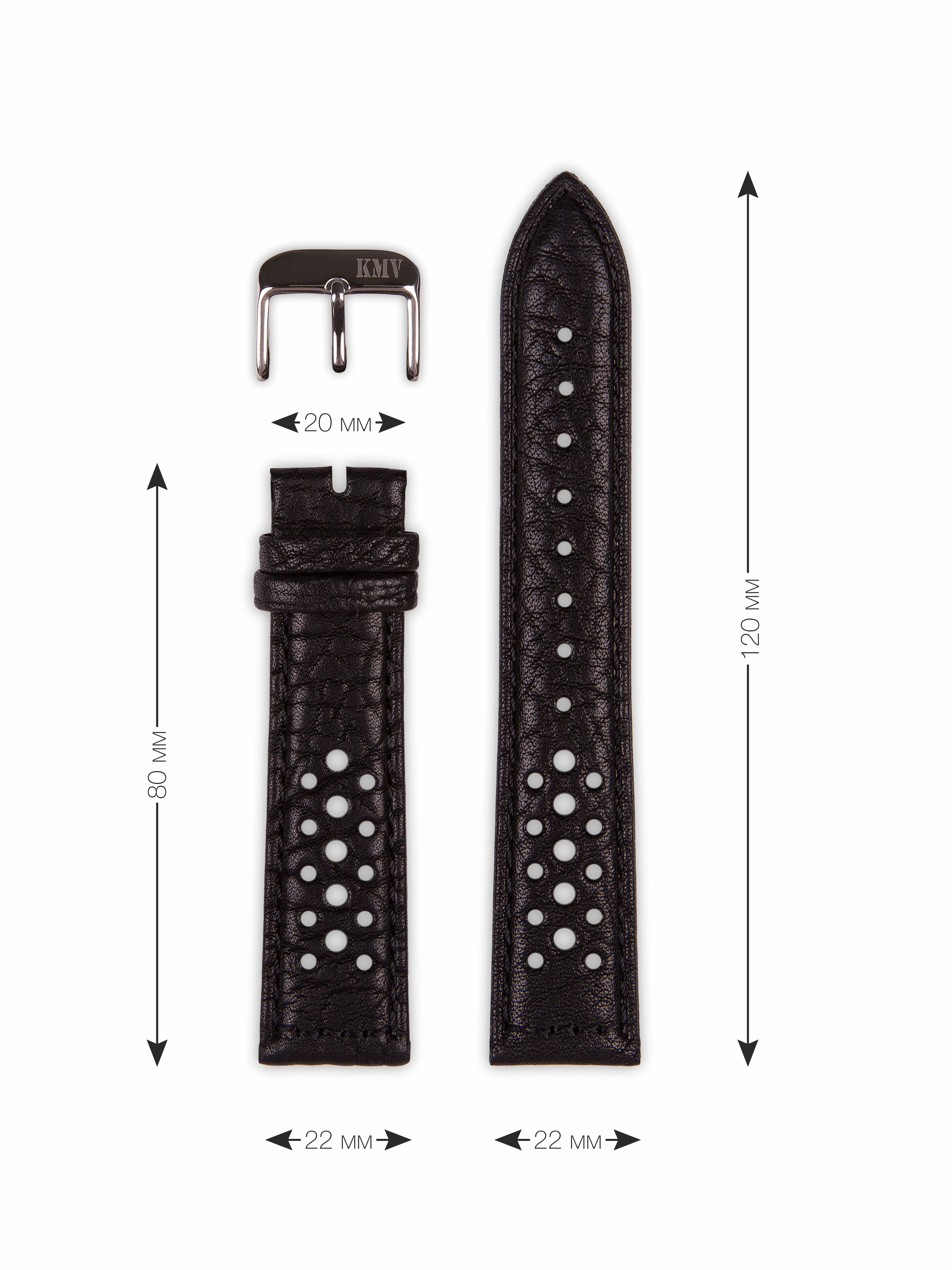 Ремень для часов "KMV" S-03, 22 мм, черный, L