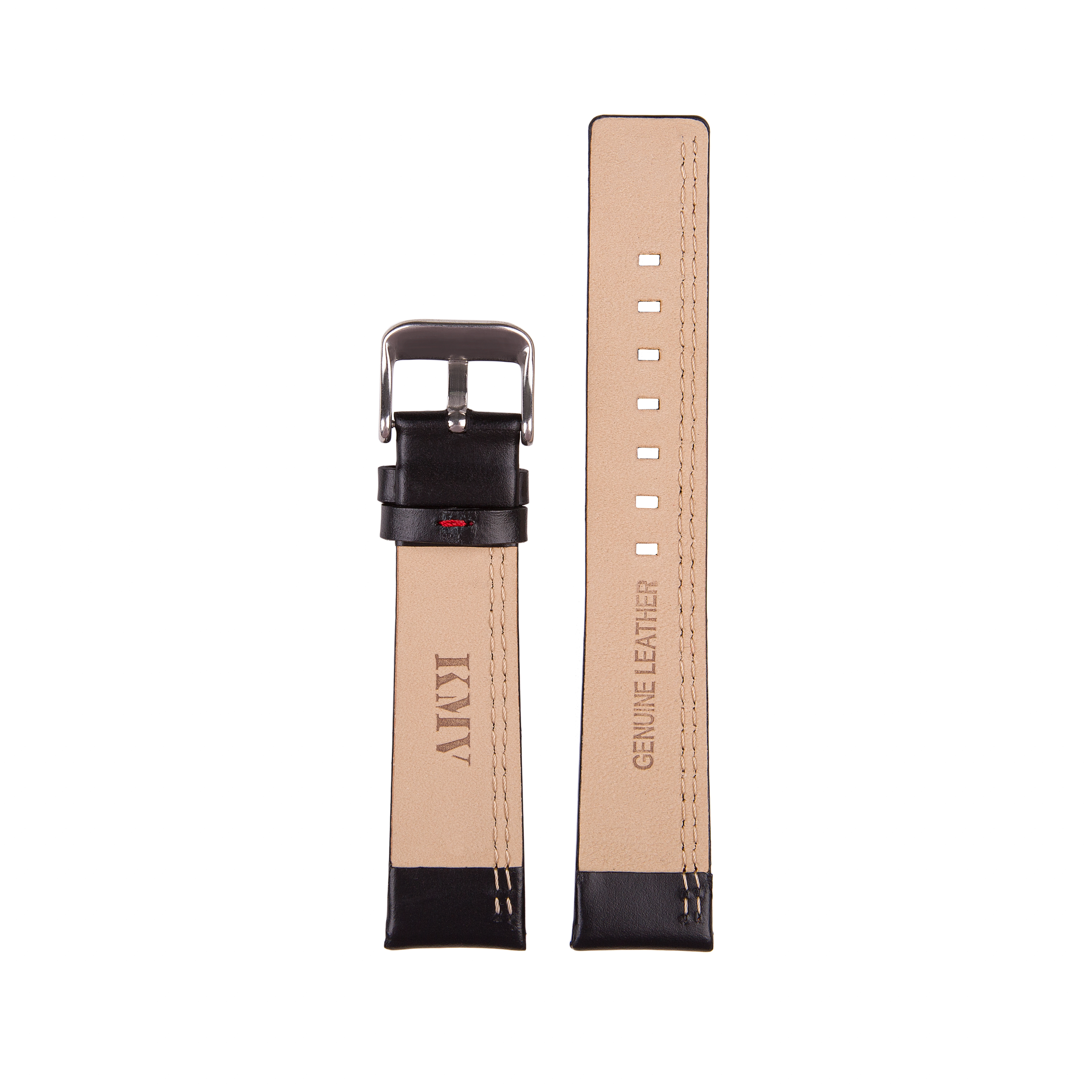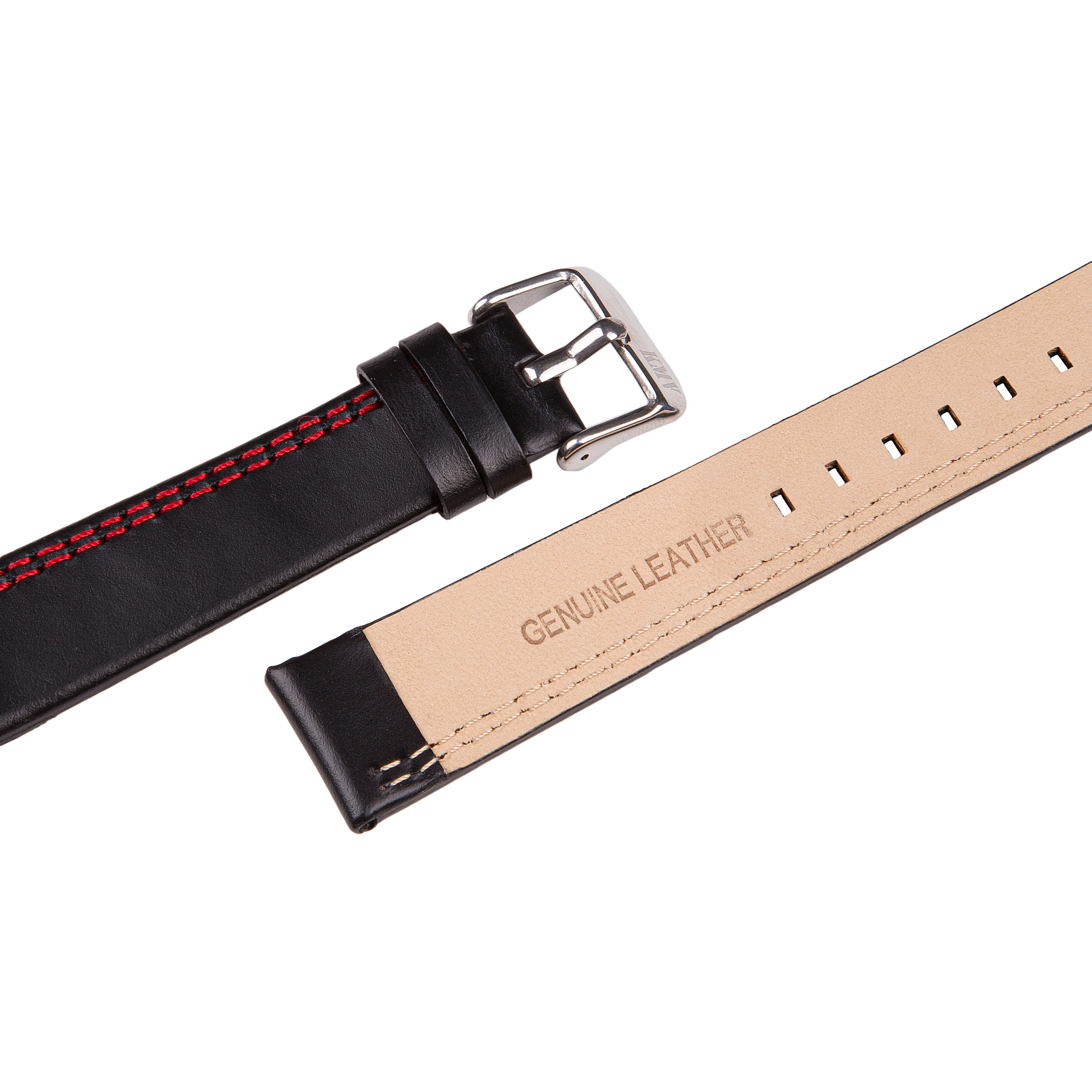 Ремешок из гладкой матовой кожи, с одной стороны прошит двойной красной строчкой