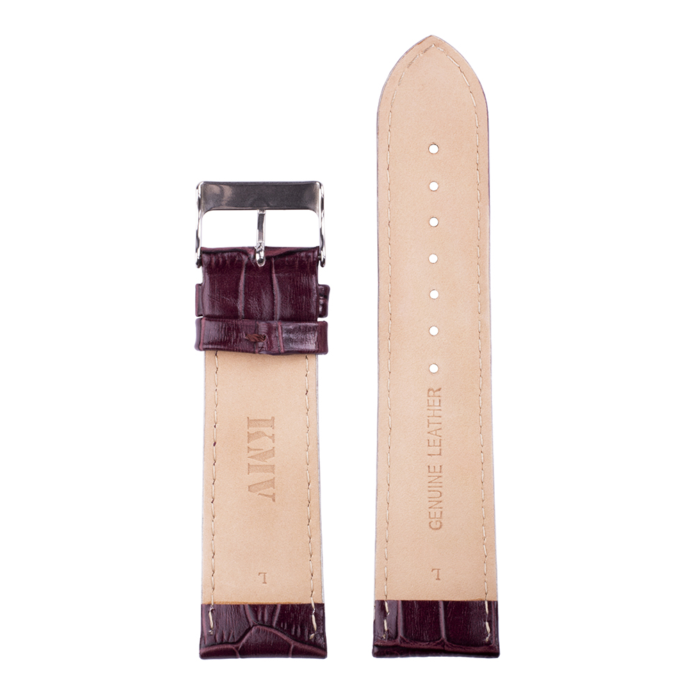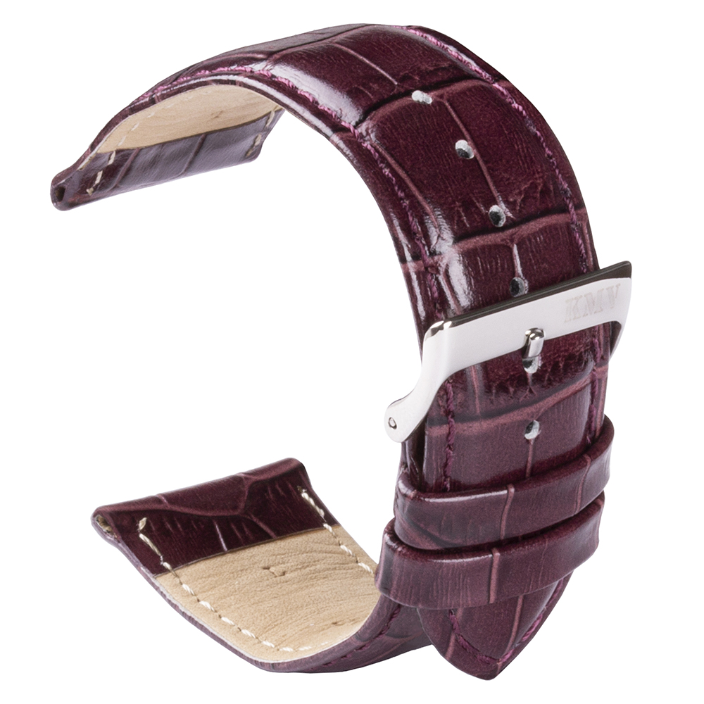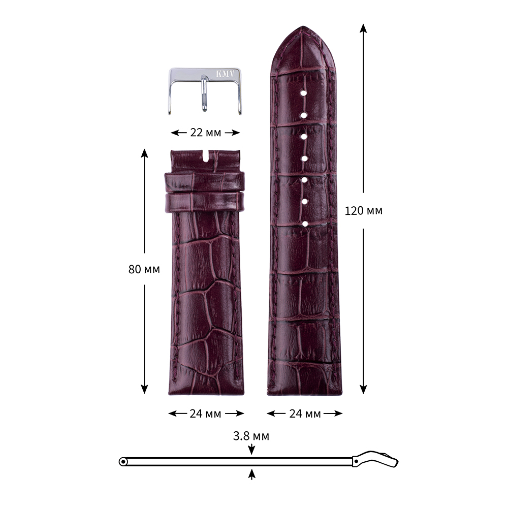 Ремень для часов "KMV" S-11, 24 мм, бордовый (бургундия), толщина 3.8 мм, L