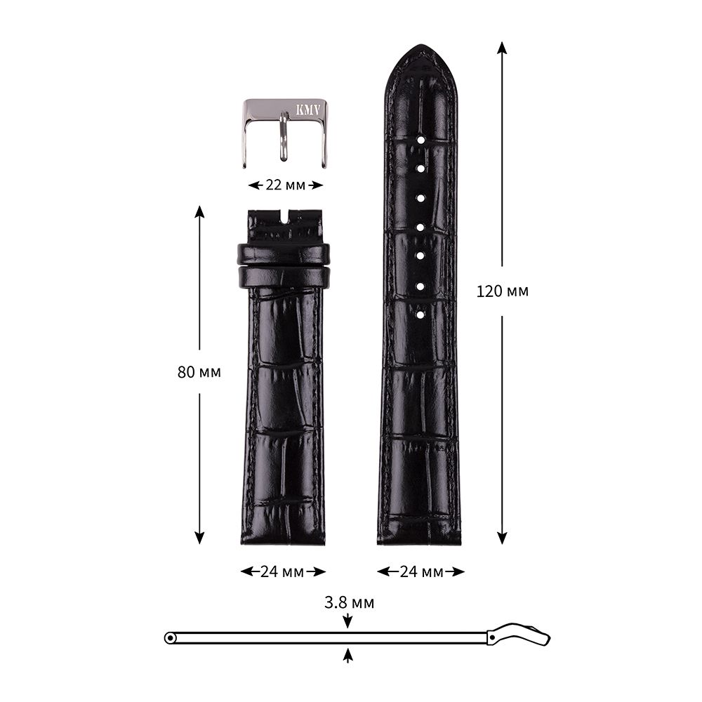 Ремень для часов "KMV" S-11, 24 мм, черный, толщина 3.8 мм, L