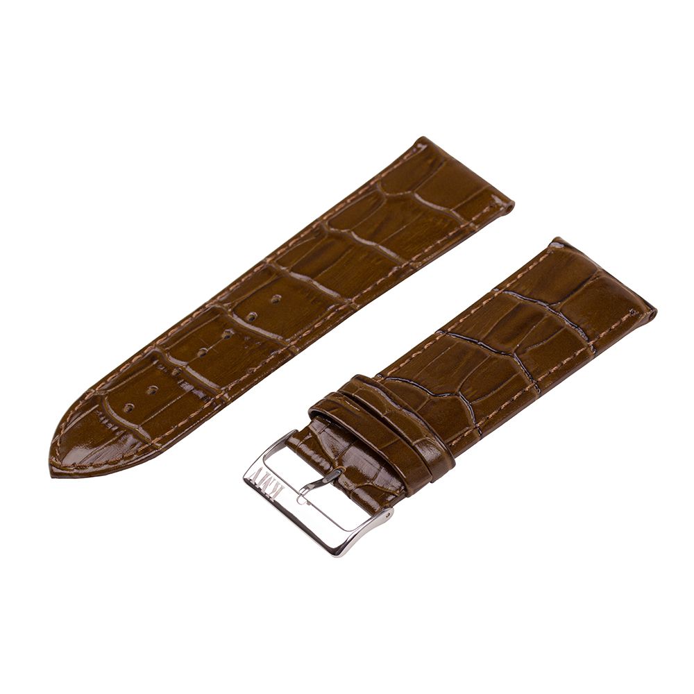 Классический ремешок из натуральной кожи с тиснением под аллигатора и строчкой в тон. Глянцевый. Пряжка из нержавеющей стали. Комфортная подкладка из нубука.