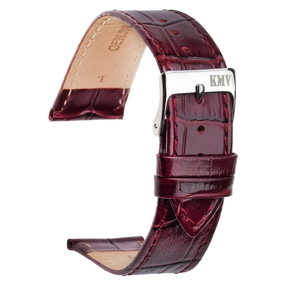 Ремень для часов "KMV" S-11, 20 мм, бордовый (бургундия), L