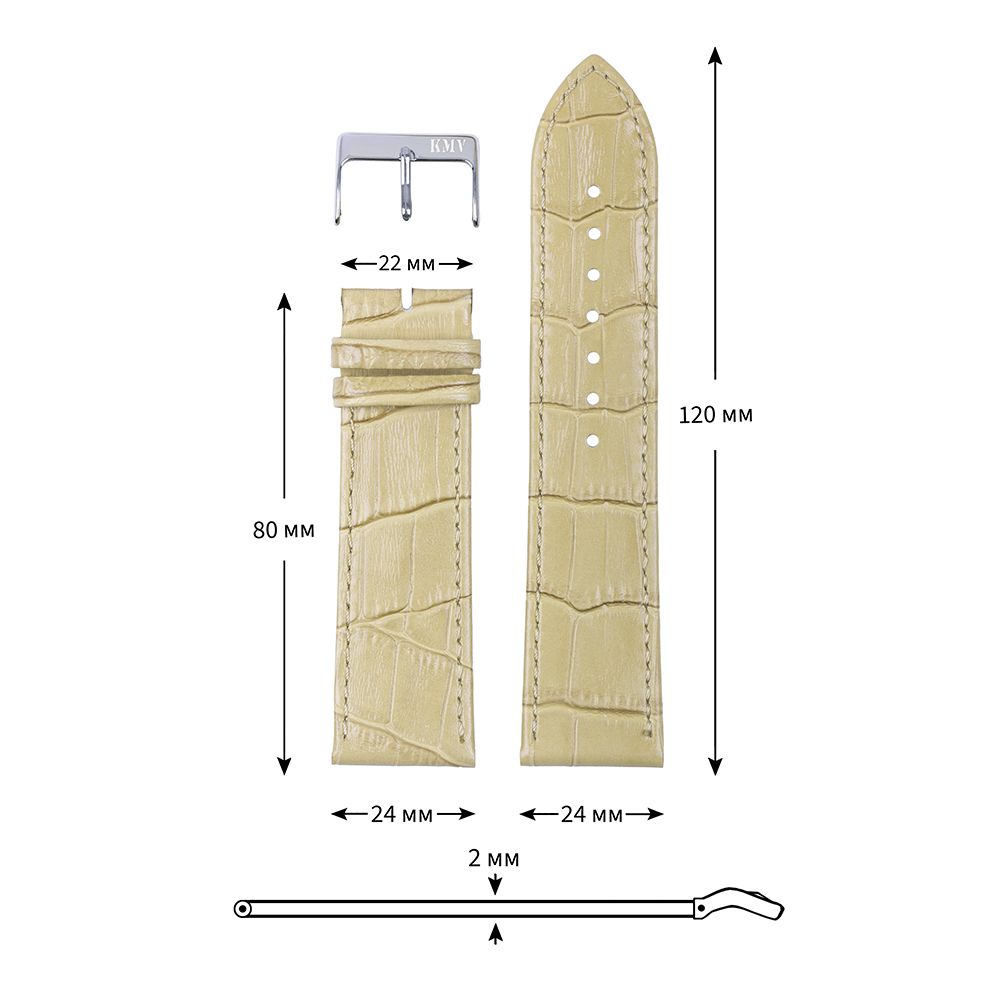 Ремень для часов "KMV" S-11, 24 мм, бежевый, L