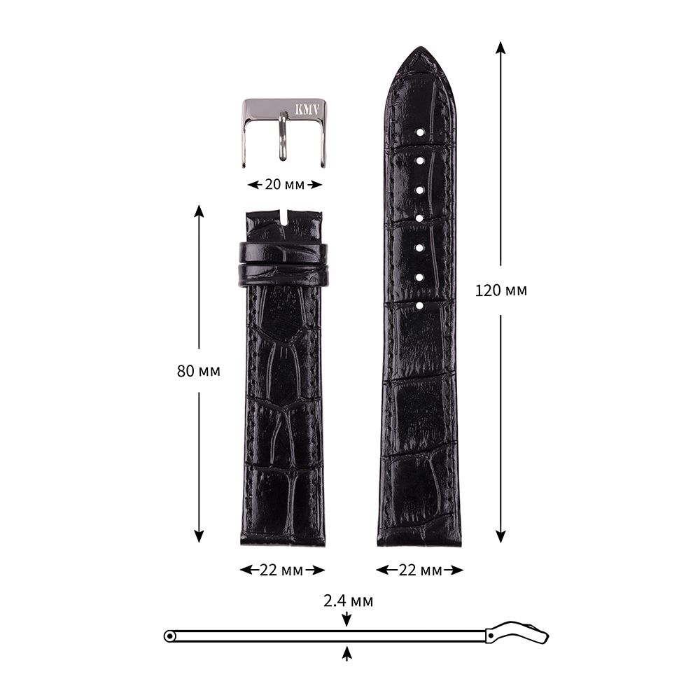 Ремень для часов "KMV" S-11, 22 мм, черный, L