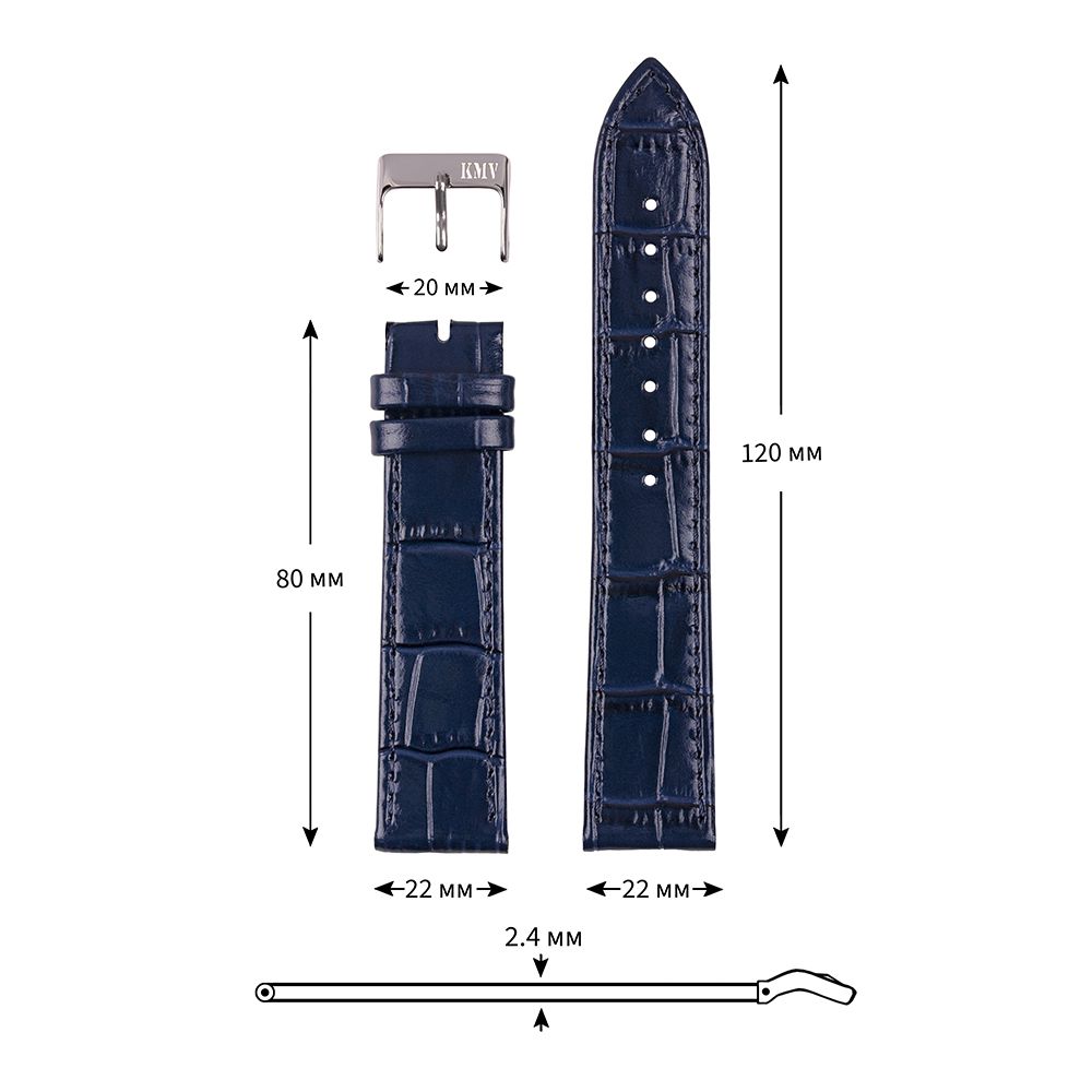 Ремень для часов "KMV" S-11, 22 мм, Темно-синий, L