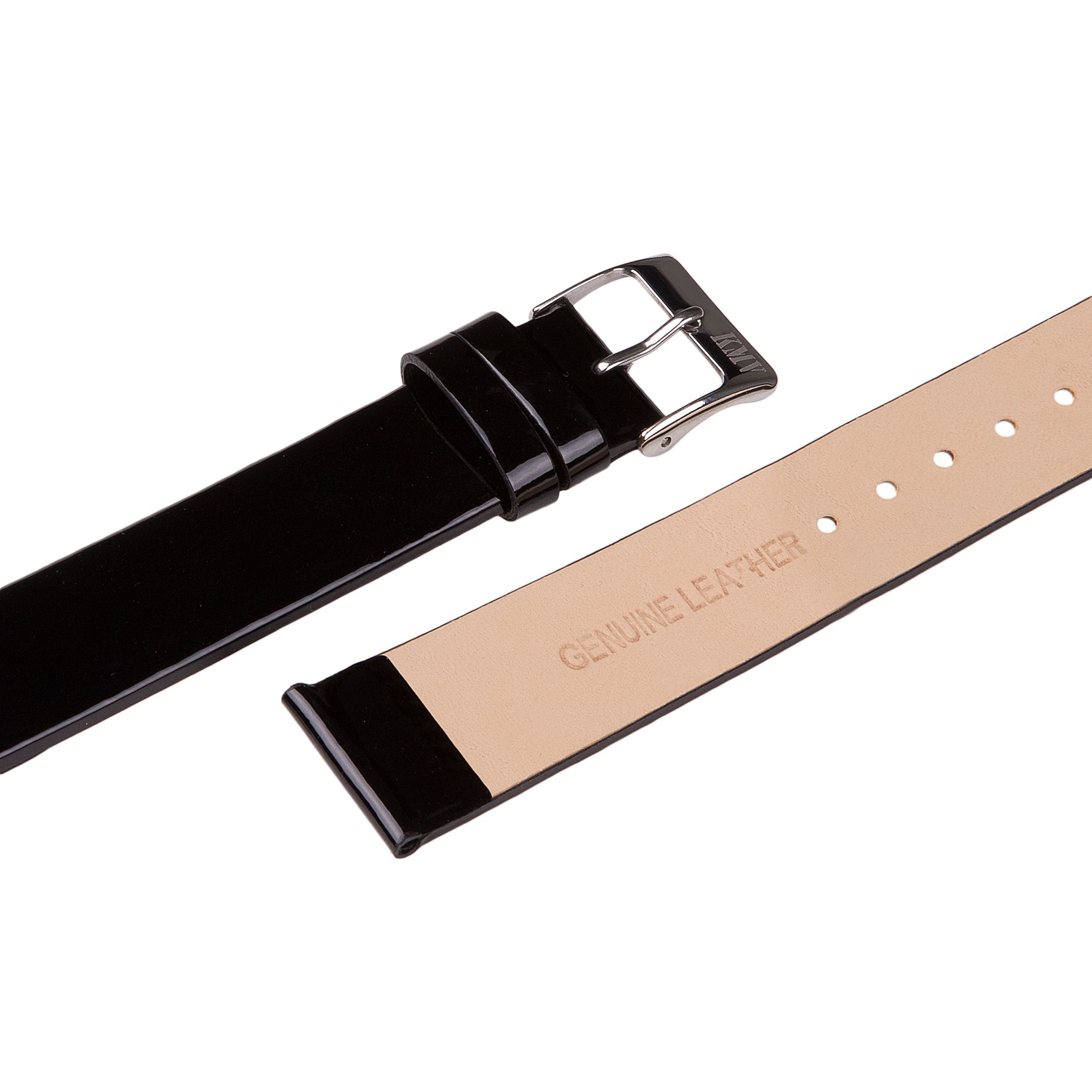 Ремень для часов "KMV" S-13, 22 мм, черный лаковый, L