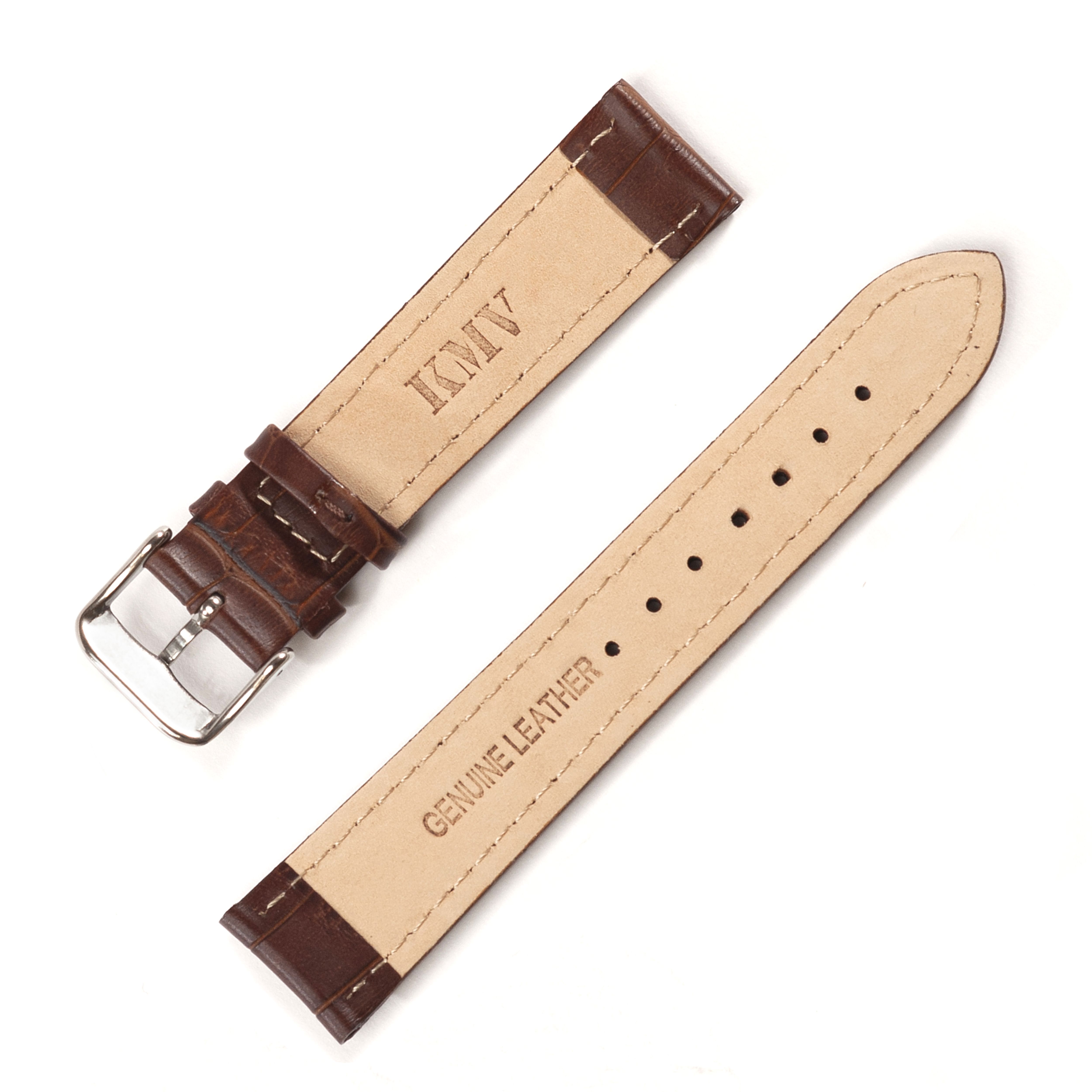 Ремень для часов "KMV" S-14, 24 мм, Темно-коричневый, XL