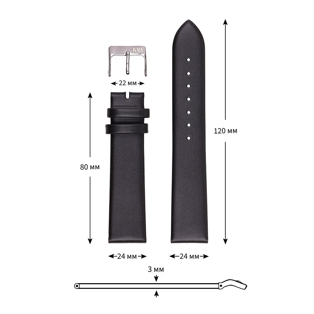 Ремень для часов "KMV" S-22, 24 мм, черный, L