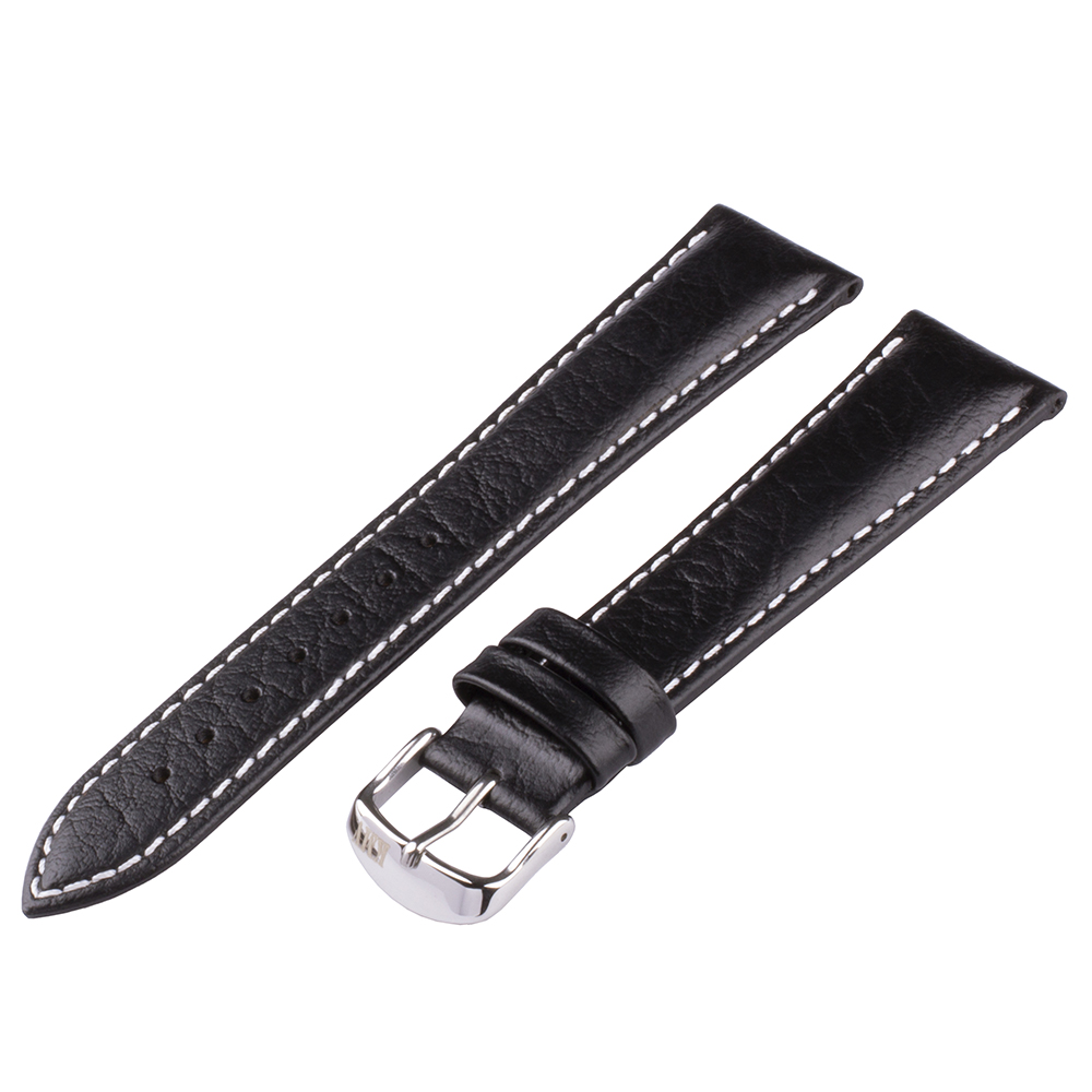Ремень для часов "KMV" S-28, 22 мм, черный с белой строчкой, XL