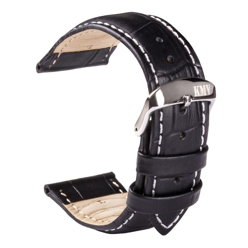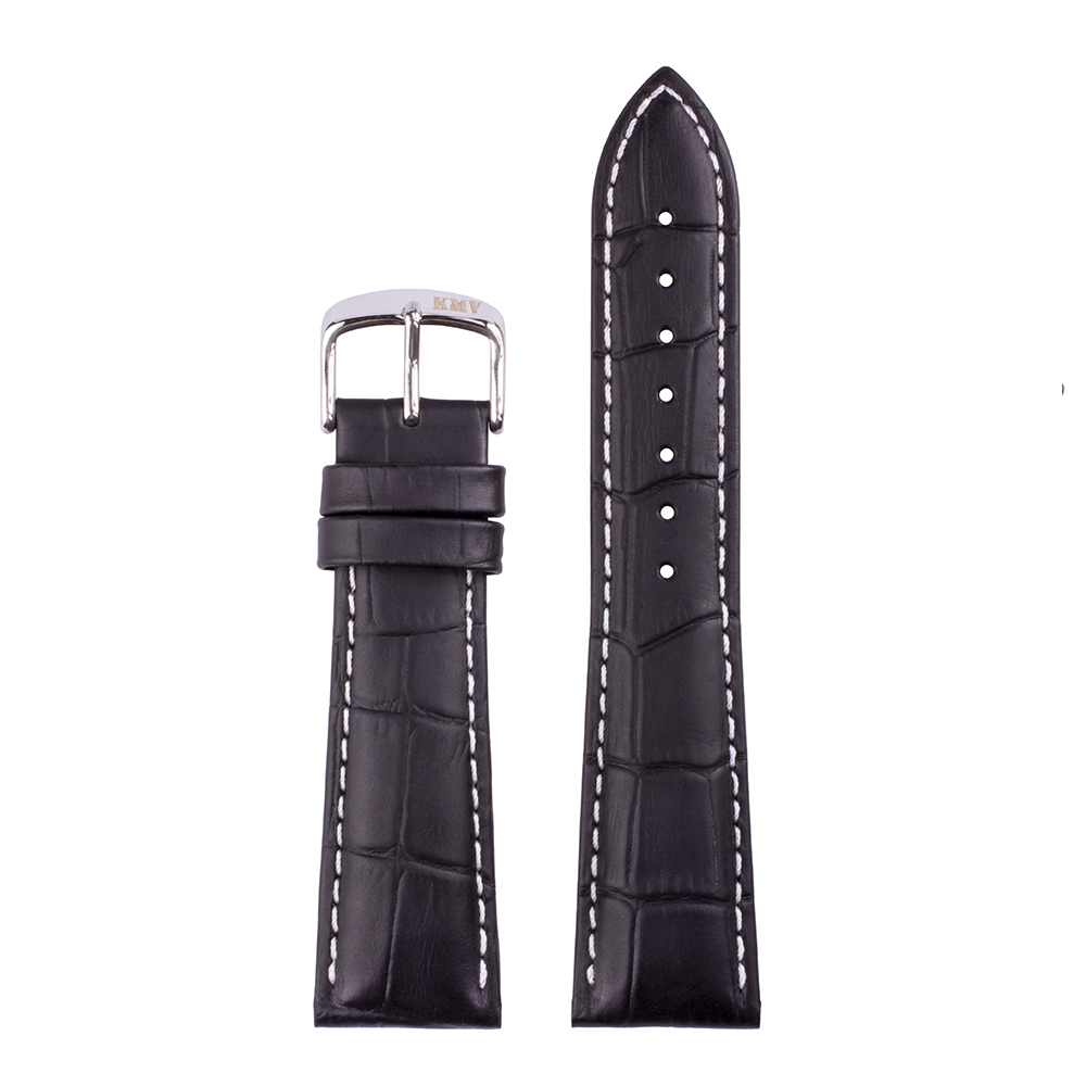Ремень для часов "KMV" S-29, 24 мм, черный с белой строчкой, L