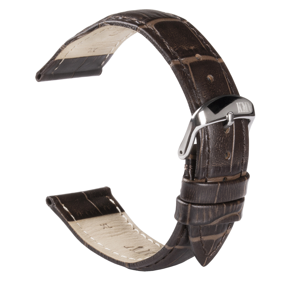 Ремень для часов "KMV" S-29, 22 мм, Темно-коричневый с Темно-коричневый строчкой, XL