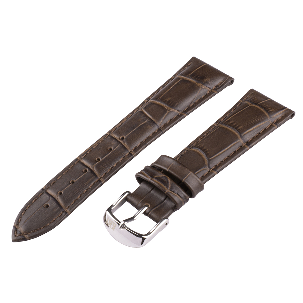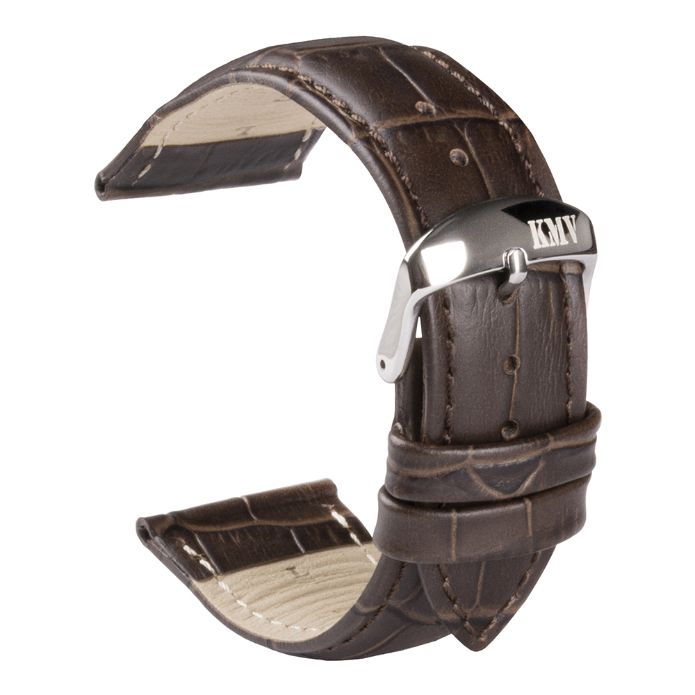 Ремень для часов "KMV" S-29, 22 мм, Темно-коричневый с Темно-коричневый строчкой, L