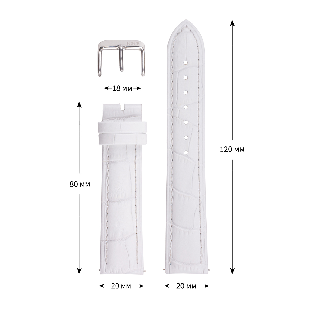 Ремень для часов "KMV" S-32, 20 мм, белый, L