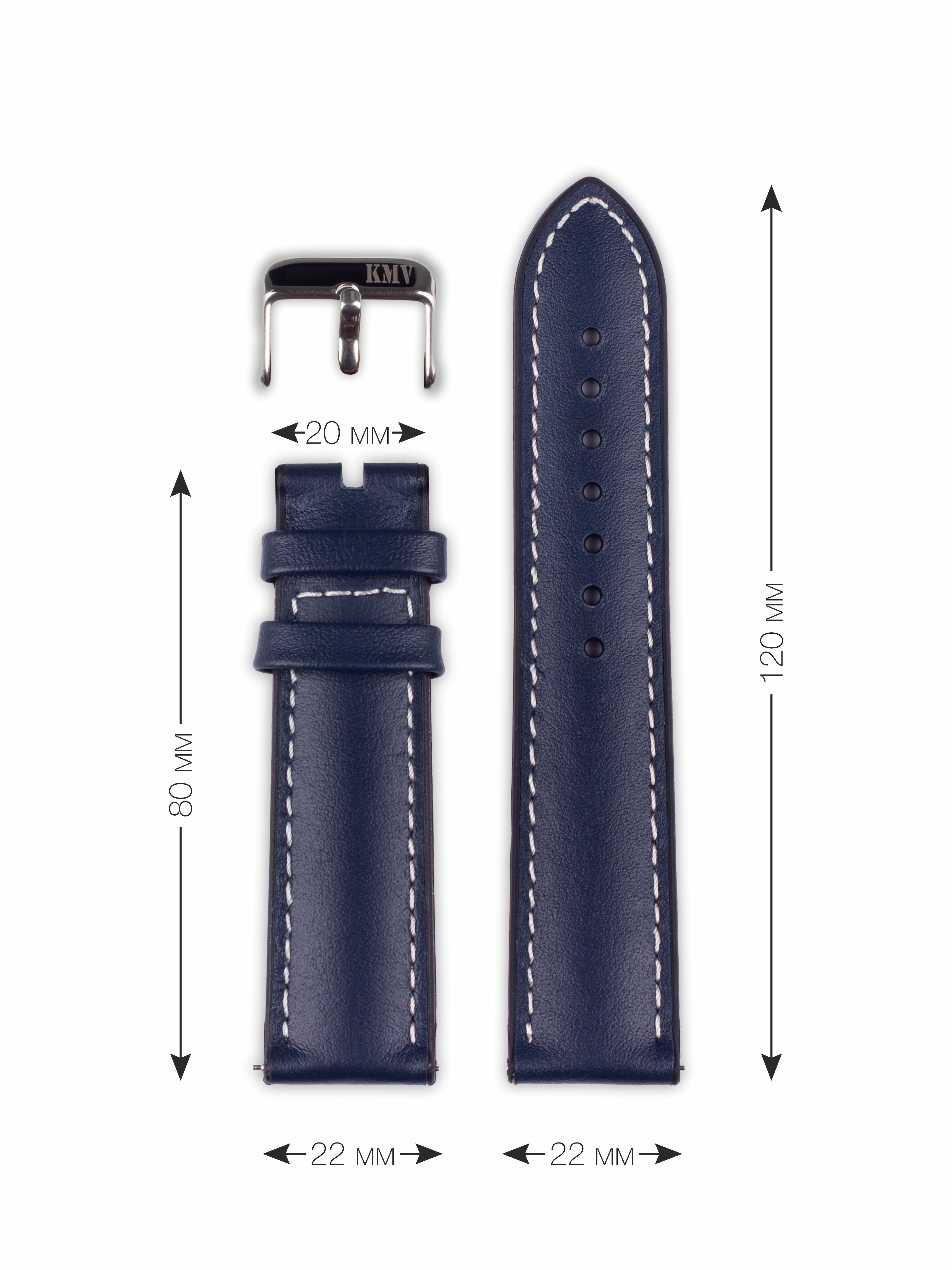 Ремень для часов "KMV" S-34, 22 р-р, синий с белой строчкой, L