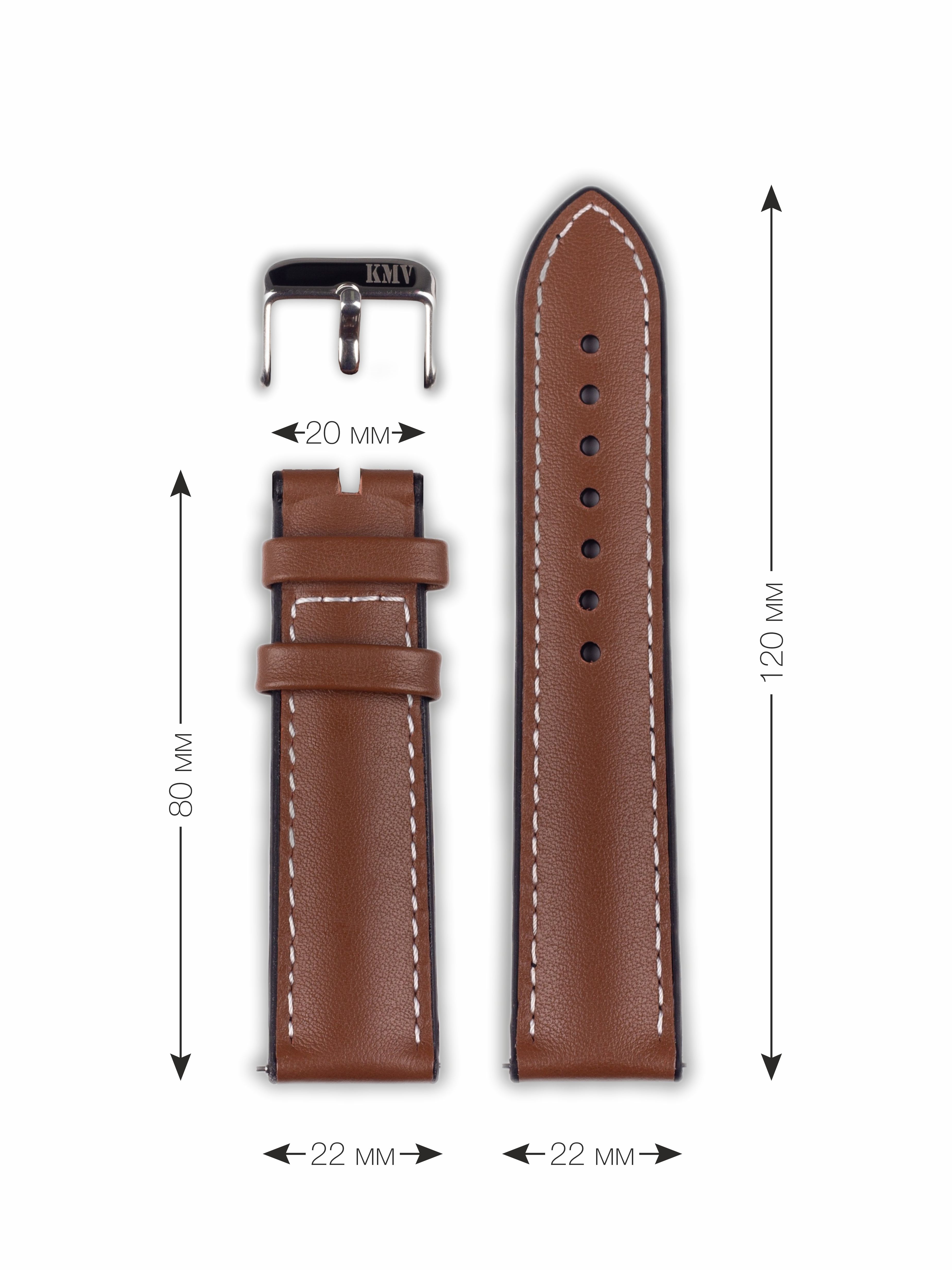 Ремень для часов "KMV" S-34, 22 р-р, коричневый с белой строчкой, L