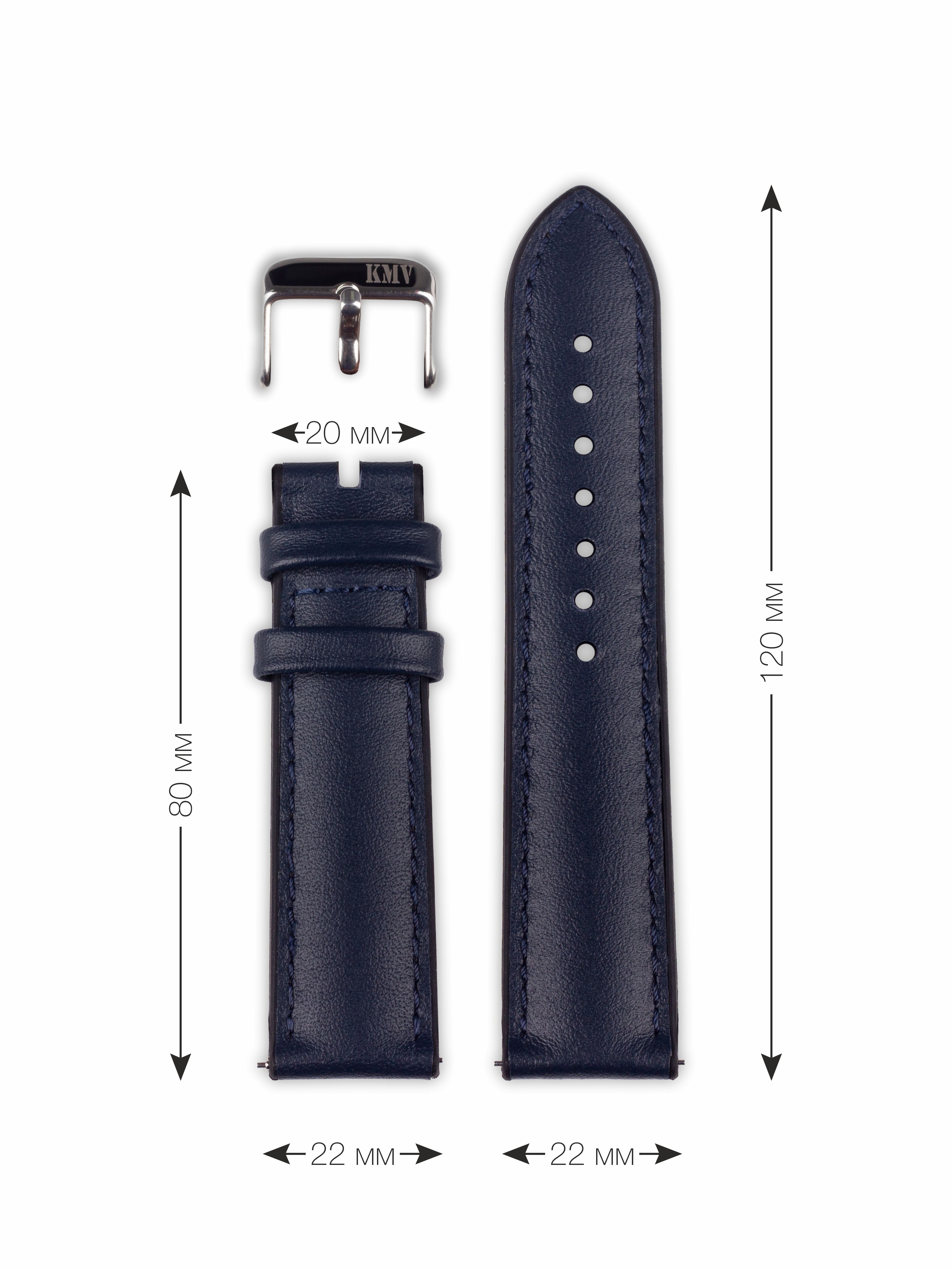 Ремень для часов "KMV" S-35, 22 р-р, синий, L
