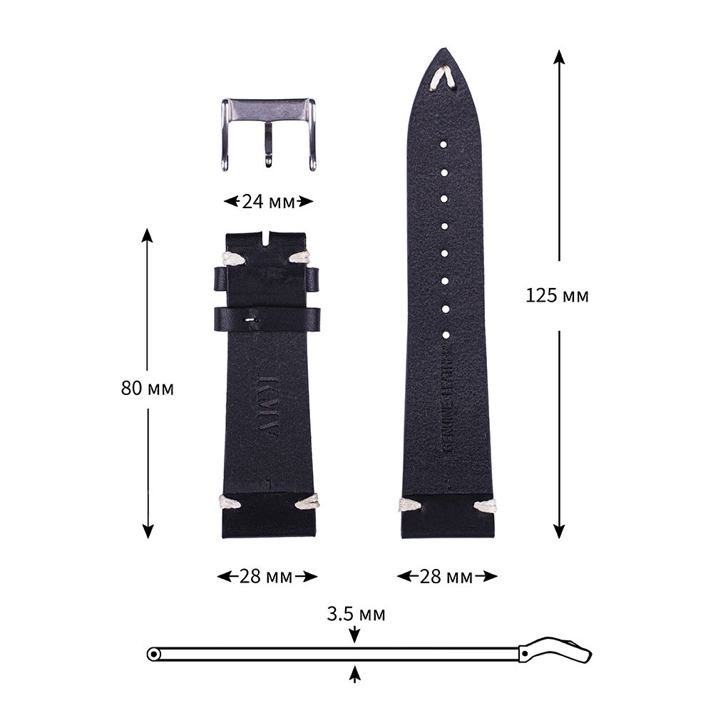 Черный ремешок для часов изготовлен из гладкой натуральной кожи.