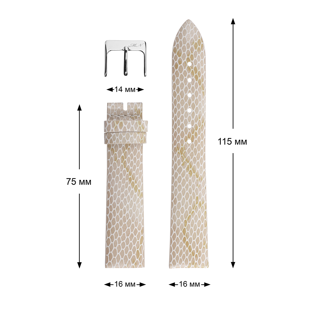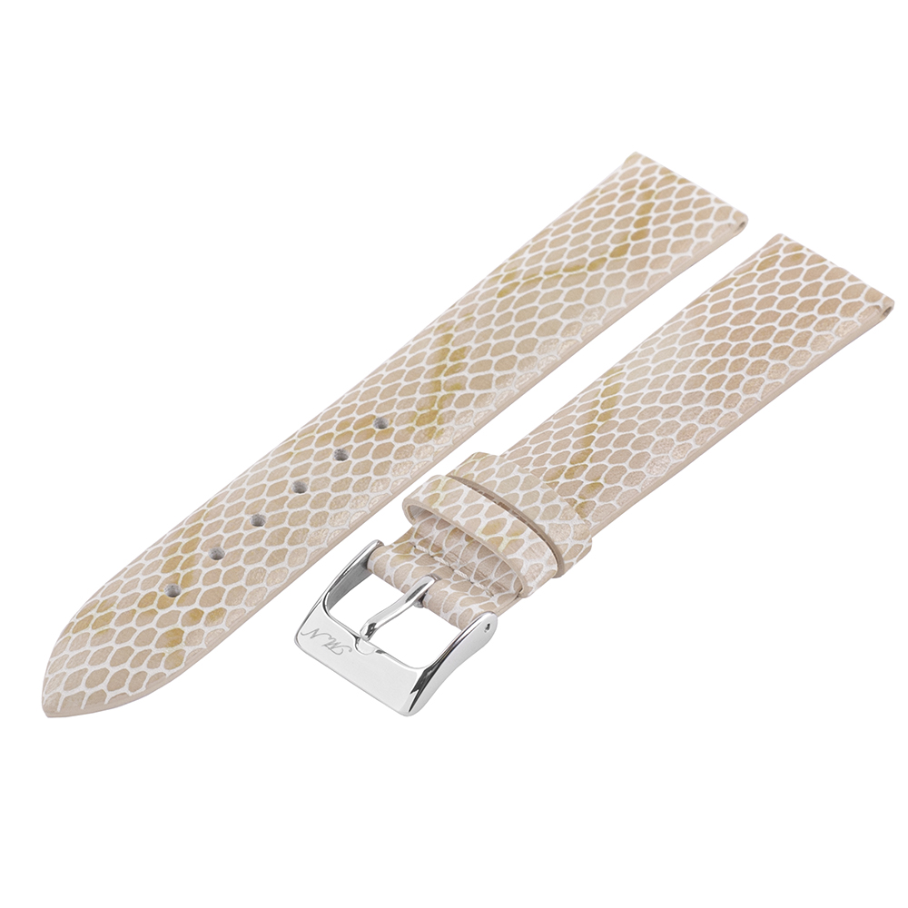 Ремень для часов "Mario Notti", S-07, 16 мм, Бежевый, имитация кожи змеи, L