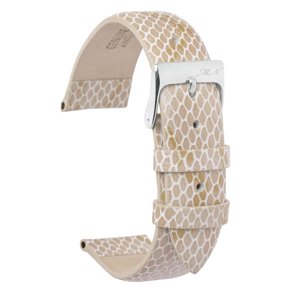 Ремень для часов 16 мм, бежевый, имитация кожи змеи, L