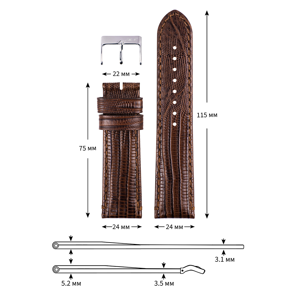 Ремень для часов "Mario Notti", S-08, 24 мм, Коричневый, L