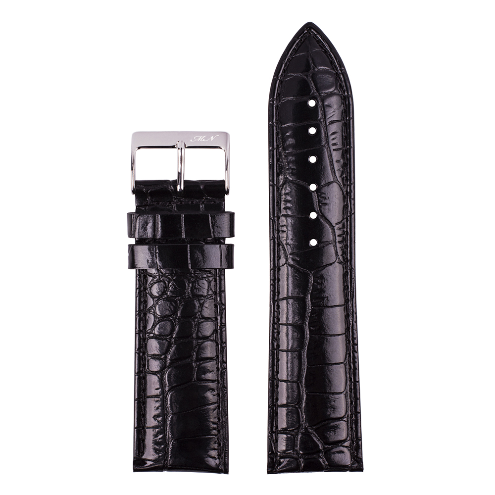 Классический ремешок из натуральной кожи с тиснением под крокодила и строчкой в тон. Глянцевый. Пряжка из нержавеющей стали. Комфортная подкладка из нубука.