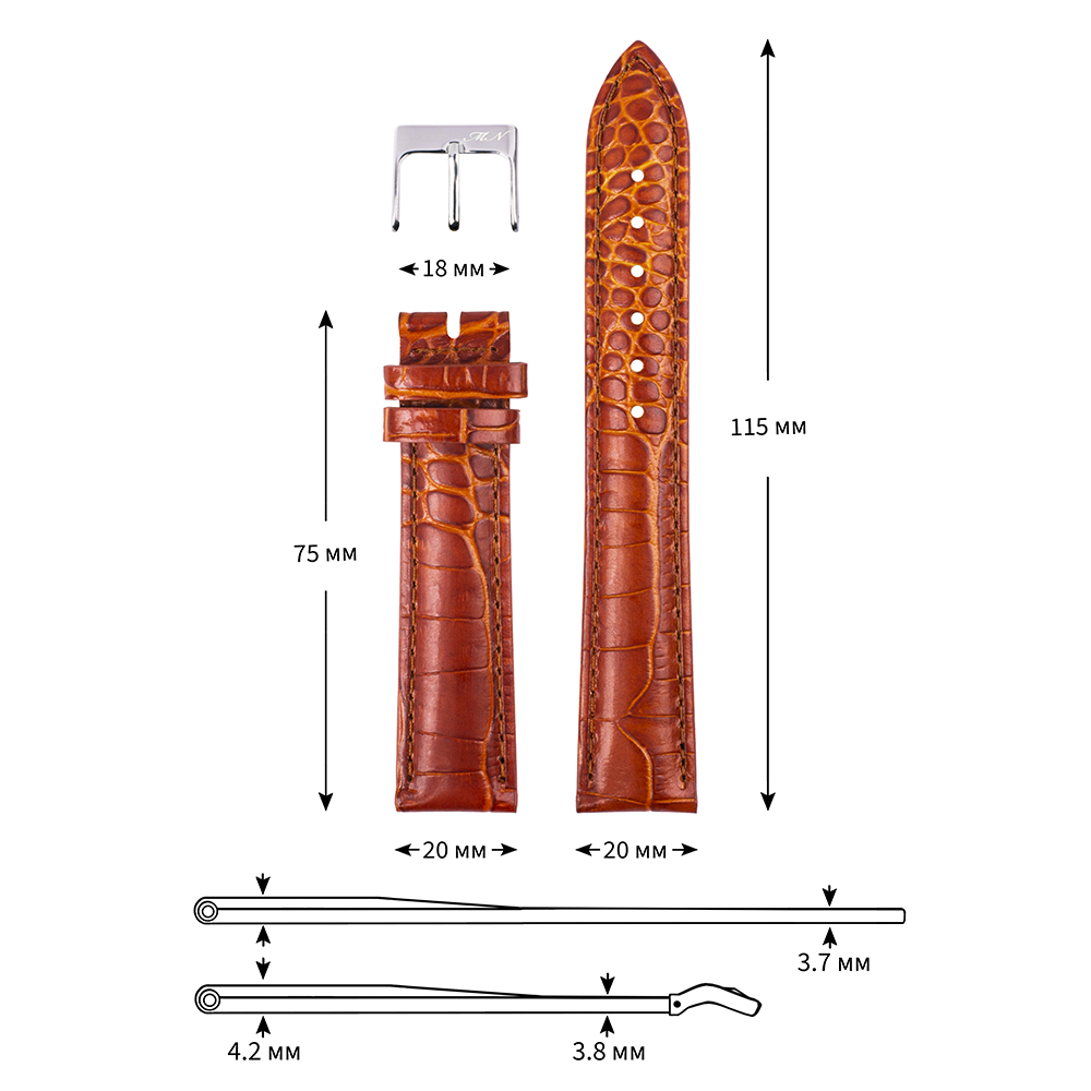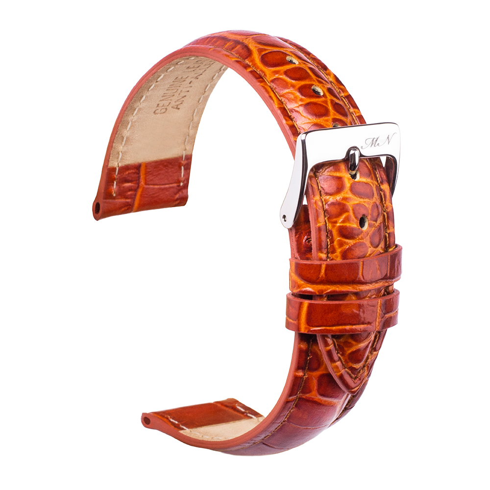 Классический ремешок из натуральной кожи с тиснением под крокодила и строчкой в тон. Глянцевый. Пряжка из нержавеющей стали. Комфортная подкладка из нубука.