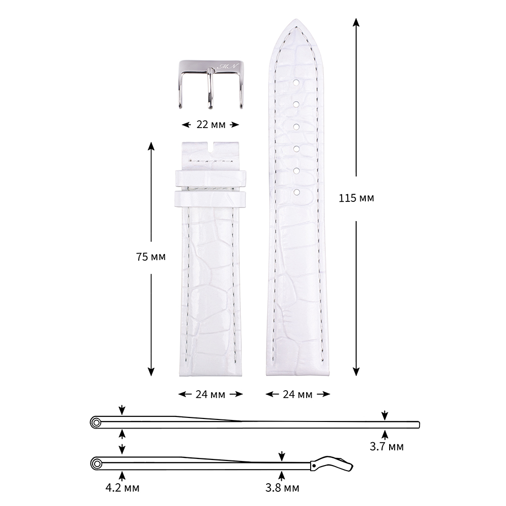 Классический ремешок из натуральной кожи с тиснением под крокодила и строчкой в тон. Глянцевый. Пряжка из нержавеющей стали. Комфортная подкладка из нубука.