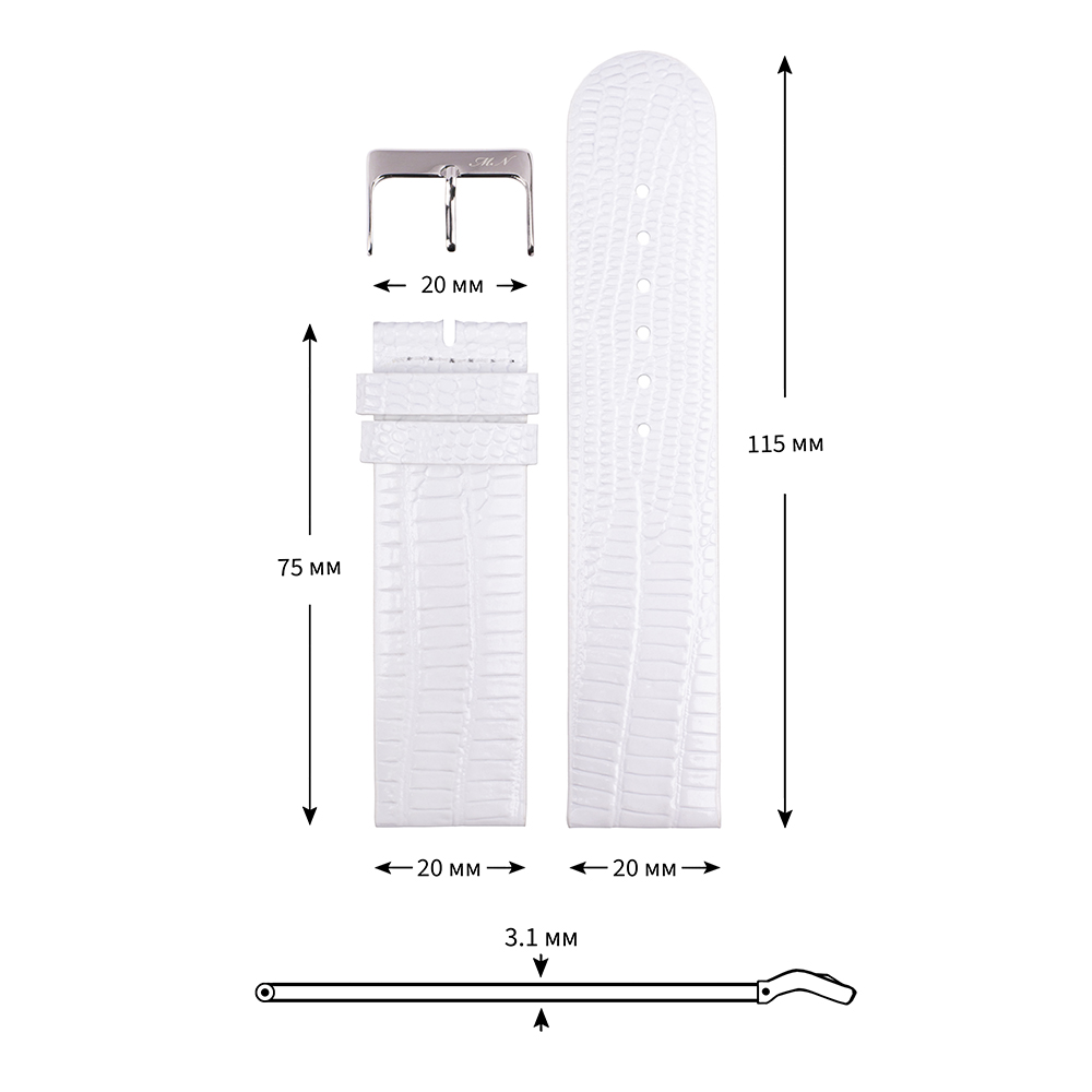 Ремень для часов "Mario Notti", S-11, 20 мм, Белый, L