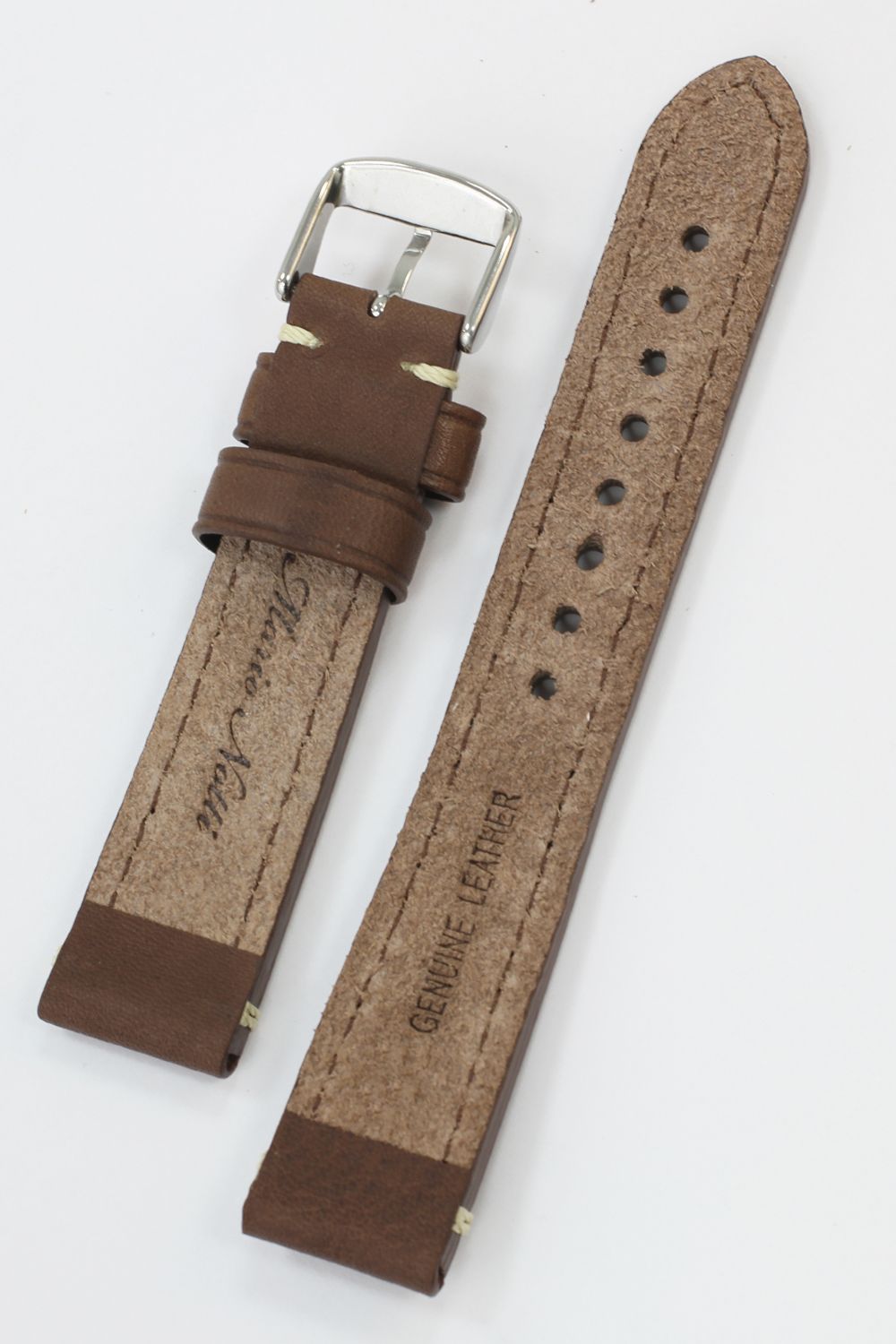 Ремешок изготовлен из кожи теленка, имеет гладкую матовую поверхность с белой строчкой, подкладка нубук, пряжка из нержавеющей стали.