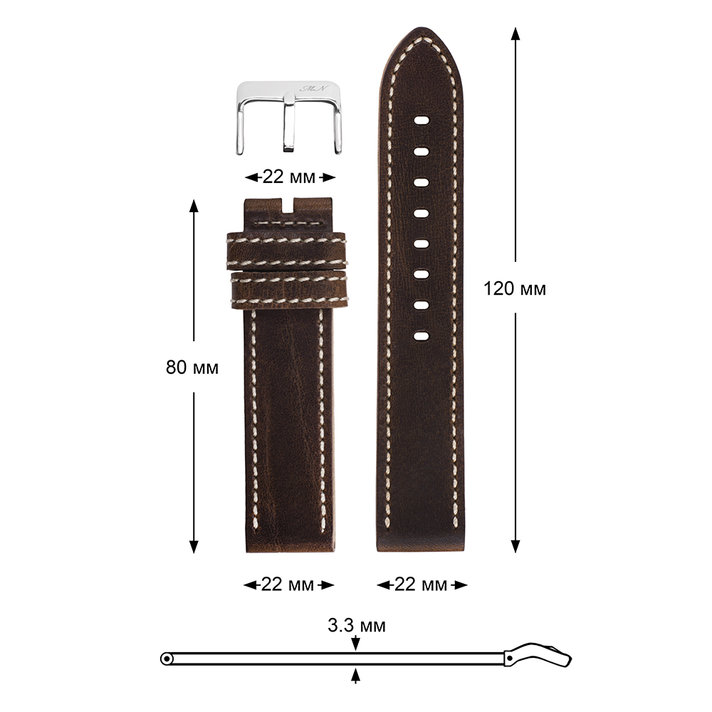 Ремень для часов "Mario Notti", S-33, 22 мм, коричневый, L