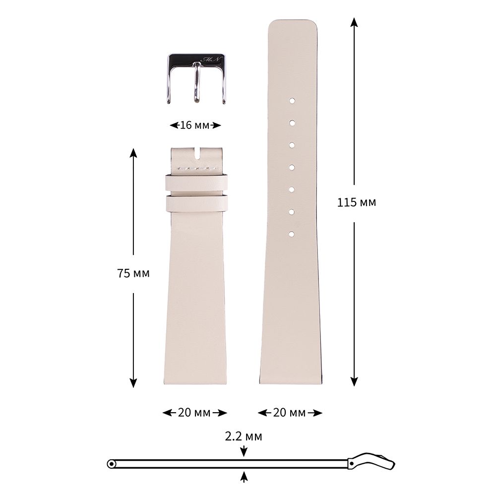 Ремешок для часов из мягкой натуральной кожи бежевого цвета.