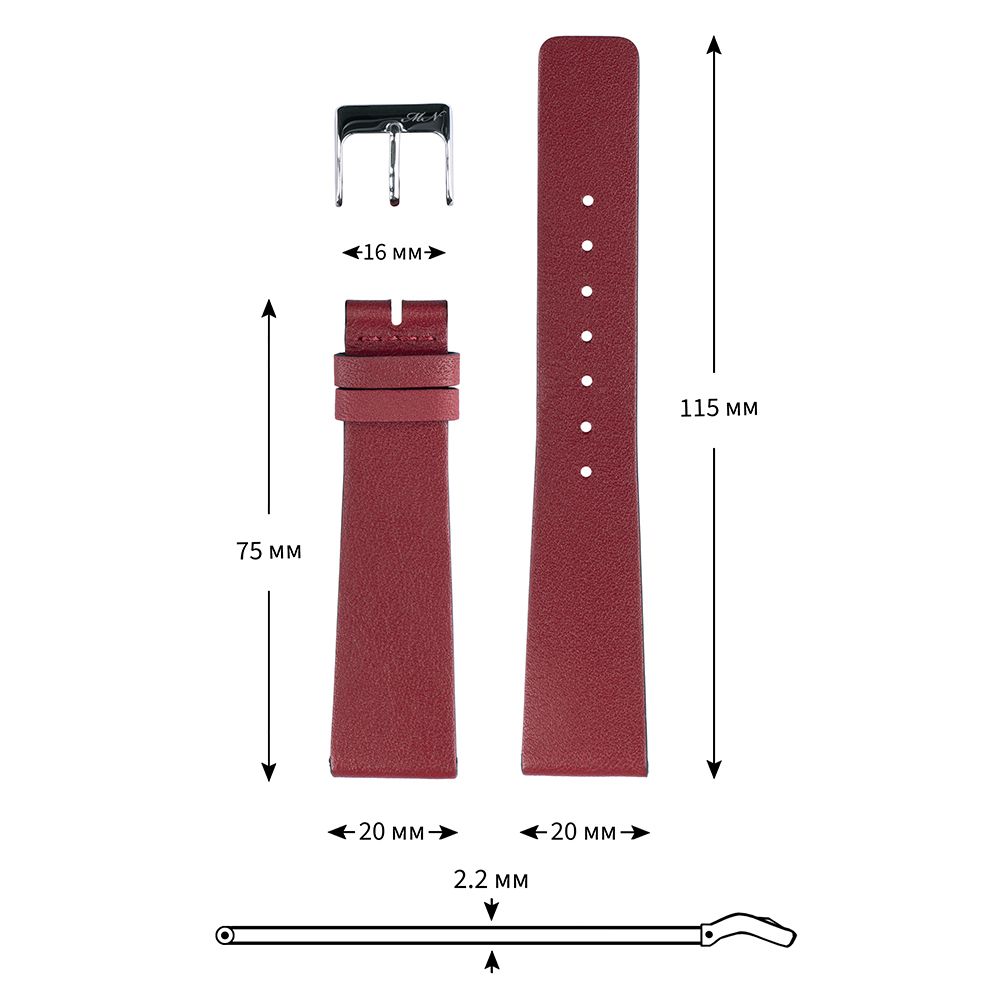 Ремень для часов "Mario Notti", S-40, 20 мм, рубиновый, L