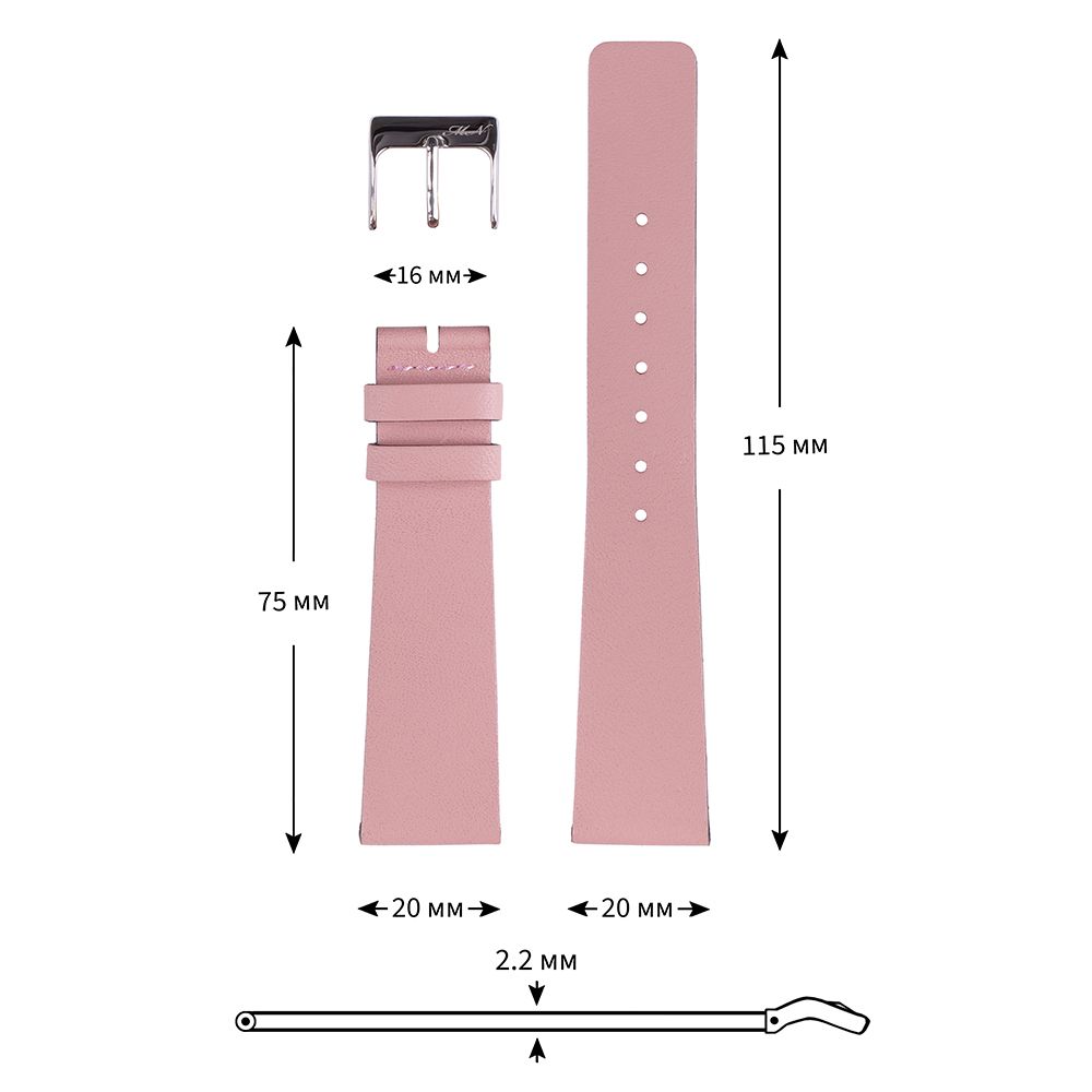 Ремешок для часов из мягкой натуральной кожи светло-розового цвета.