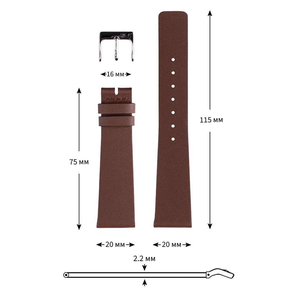 Ремень для часов "Mario Notti", S-40, 20 мм, коричневый, L