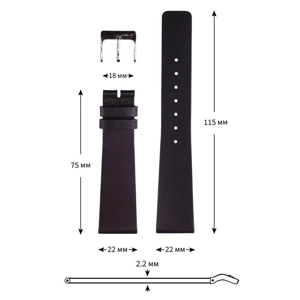 Ремень для часов "Mario Notti", S-40, 22 мм, черный, L