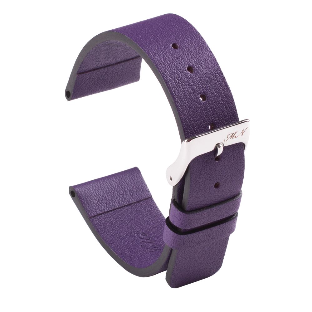 Ремешок для часов из мягкой натуральной кожи фиолетового цвета.